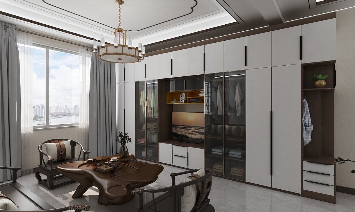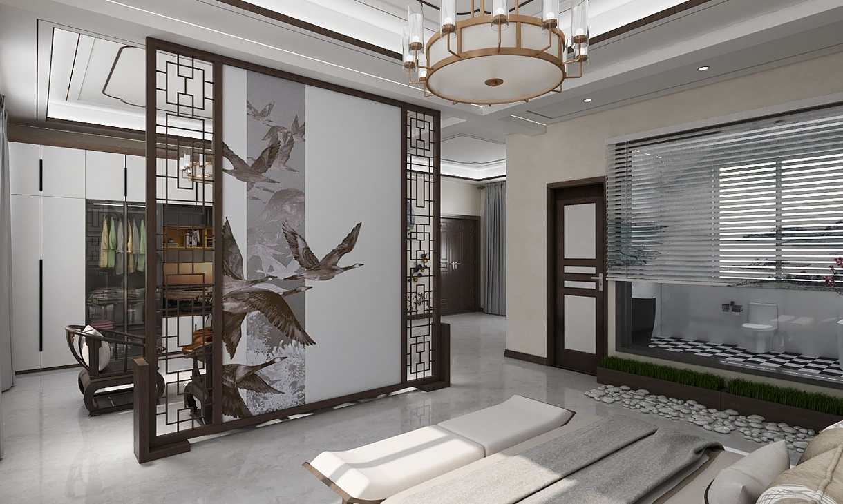 超大空間設(shè)計方案,本空間生活、休閑、休息為一體設(shè)計。在新中式的基礎(chǔ)上添加了現(xiàn)代風(fēng)格元素