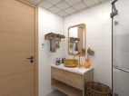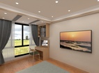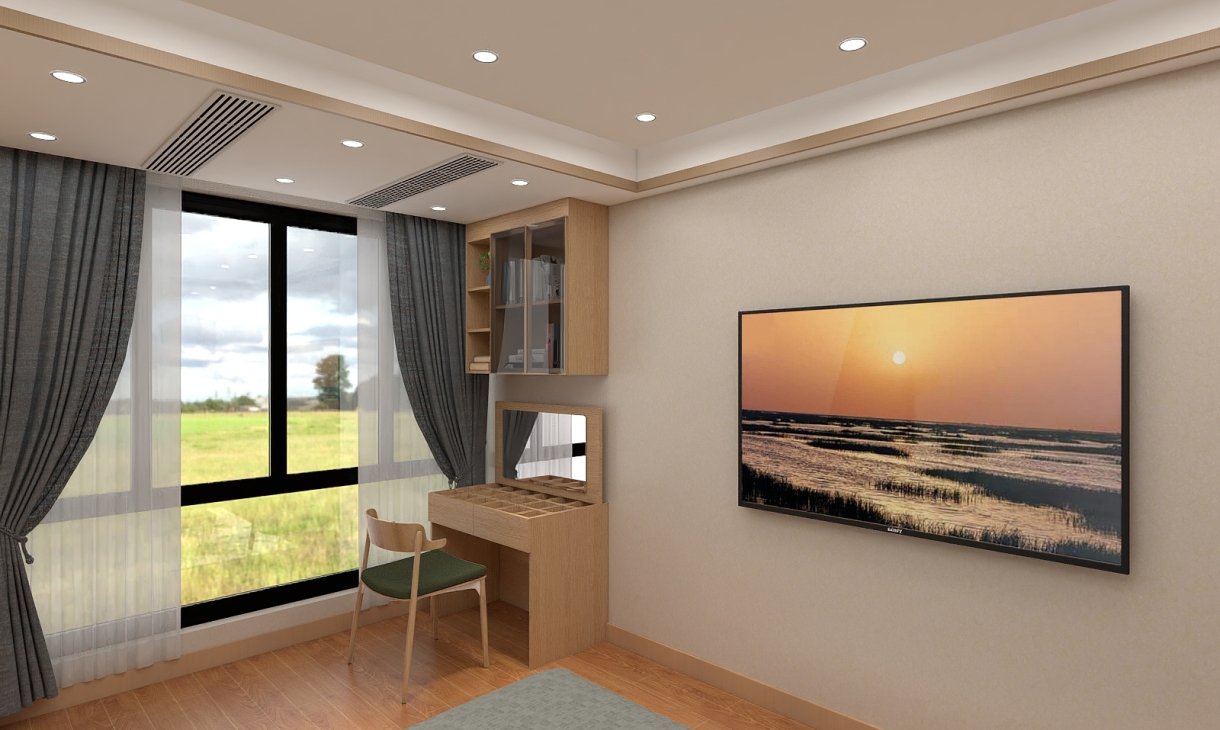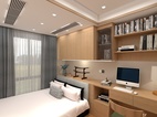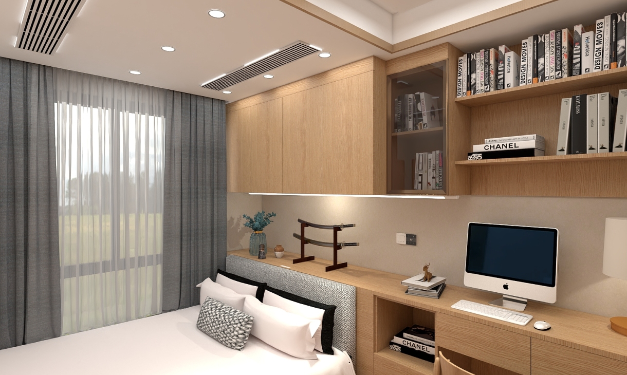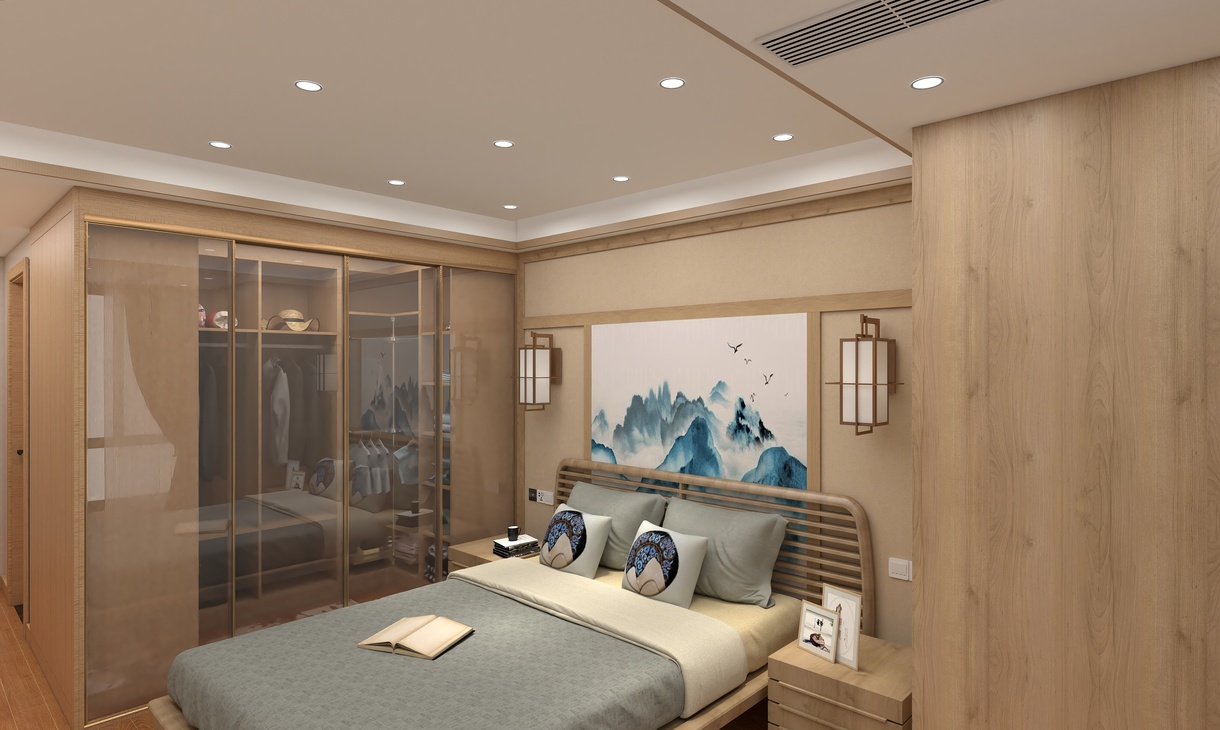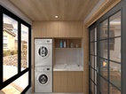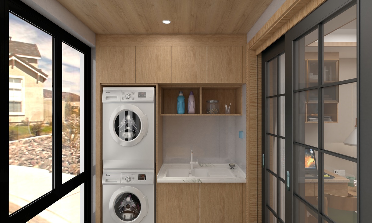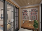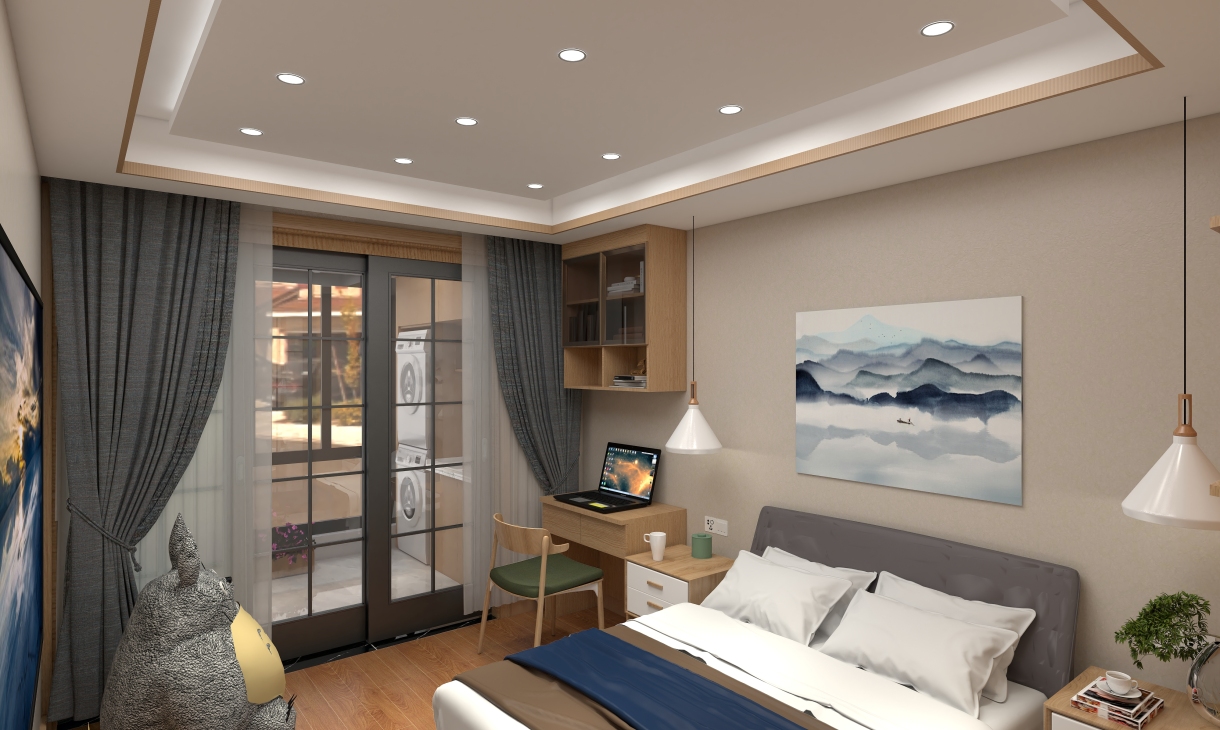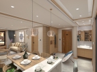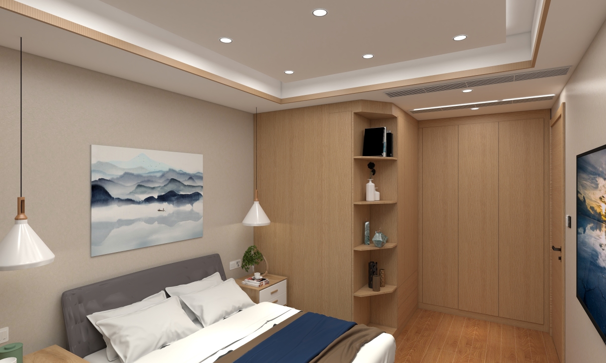 業(yè)主是一對(duì)年輕的夫妻,想要有足夠的儲(chǔ)物空間,硬裝盡量簡(jiǎn)化,不喜歡太多做作的裝飾。經(jīng)過(guò)多次溝通,最終確定了日式裝修風(fēng)格。 在大的方向上,整個(gè)裝修以原木色為主,返璞歸真。廚房地柜選擇灰色,打破空間里原木色帶來(lái)的沉悶感。餐廳里利用高柜將冰箱包住,冰箱與酒柜之間的柱子利用木飾面包住,并且利用柱子位置還作出了吧臺(tái),這樣餐廳里就多出了一個(gè)很有格調(diào)的酒吧。 在陽(yáng)臺(tái)上利用富有日式感的門簾將生活陽(yáng)臺(tái)與休閑陽(yáng)臺(tái)隔開(kāi)。生活陽(yáng)臺(tái)雖然位于西南次臥室一邊,但是客戶還是希望少曬衣服,盡量不要影響采光,于是洗衣機(jī)選擇了洗烘一體的。休閑陽(yáng)臺(tái)位于客廳一邊,地面抬高15公分,鋪上地板,放上茶臺(tái),周末休閑時(shí)光與愛(ài)人一起品茗觀景,也是極好不過(guò)的。
