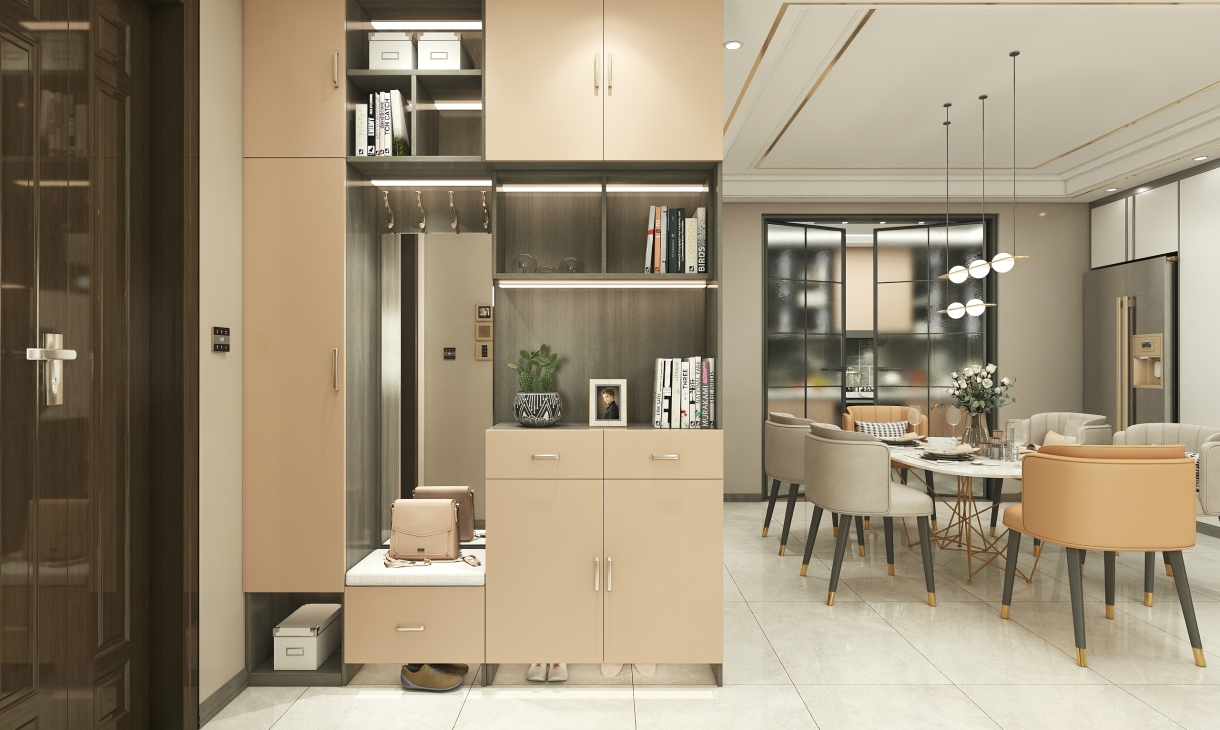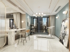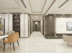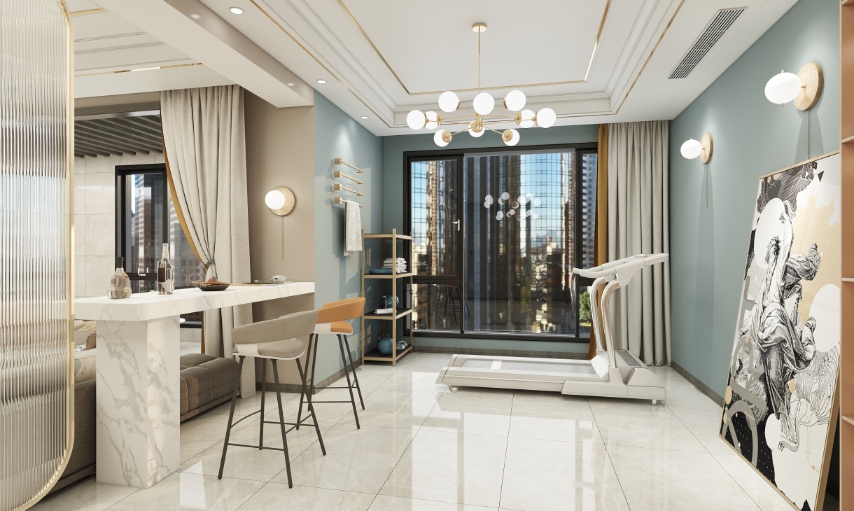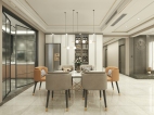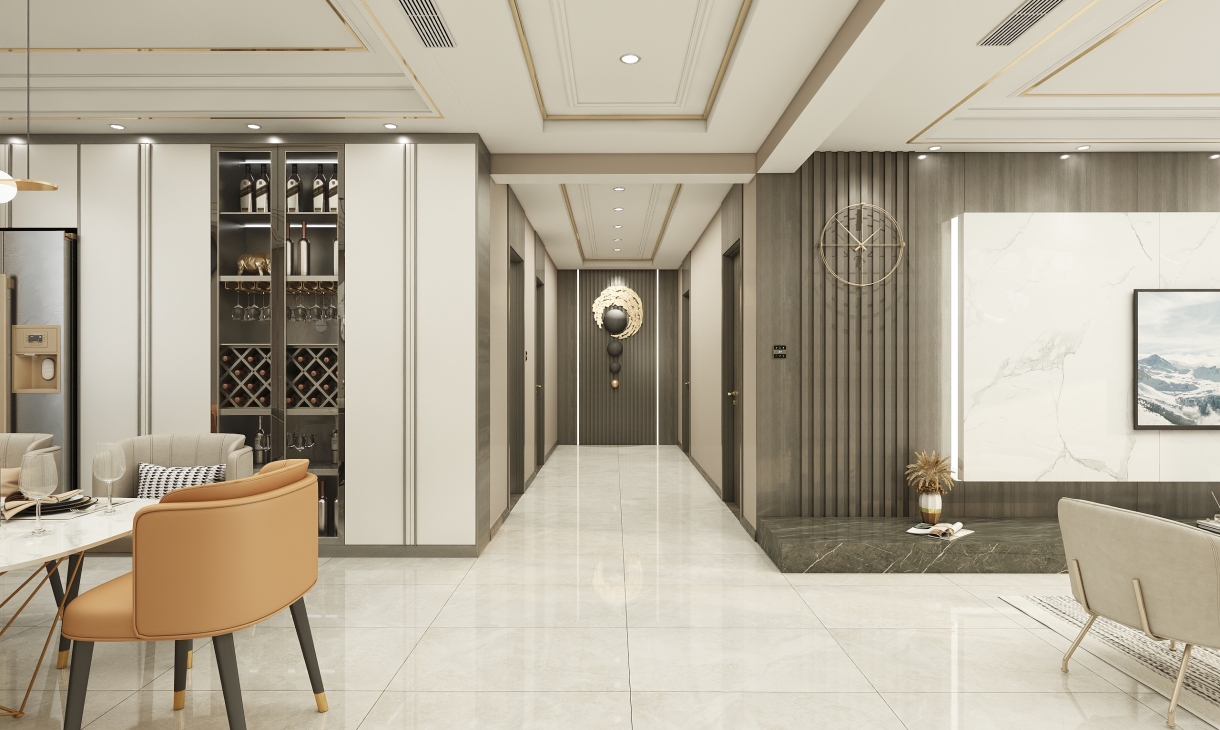 本案以“輕奢舒適生活”為設(shè)計(jì)核心,以時尚靈動的創(chuàng)意表達(dá)出空間的精粹。輕奢餐廳,鑲嵌式冰箱玻璃柜門,主任對紅酒的喜愛,保證了客餐廳的極致整潔。