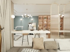 為了更好的提升生活氣息,我們放棄了過多的裝飾,開放式書房利用了藍(lán)與橙的色調(diào)對比,在這樣的“慢”風(fēng)格其實(shí)很契合地到用”來定義。簡潔、直接、功能化且貼近自然,一份寧靜的風(fēng)情撲面而來。