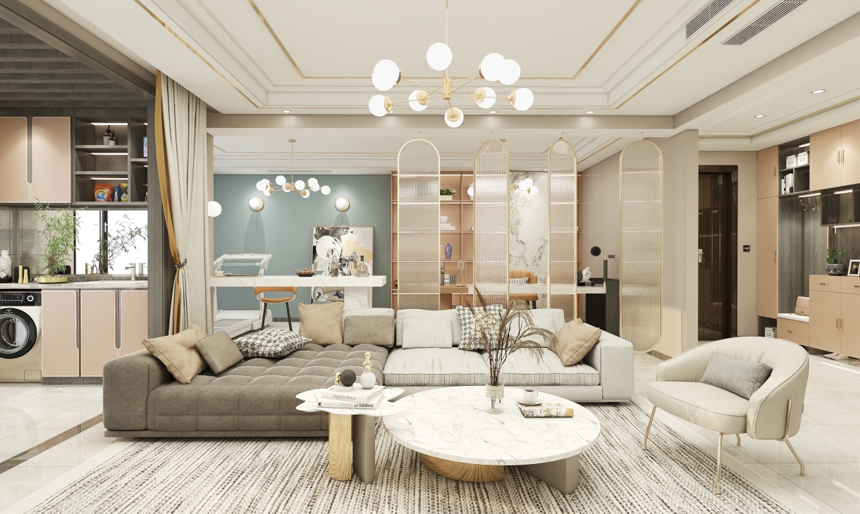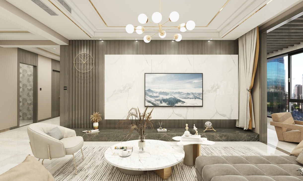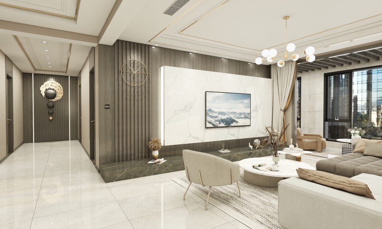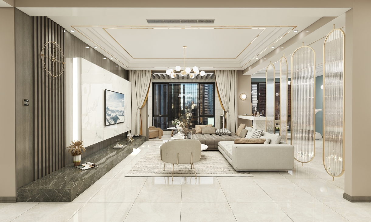 現(xiàn)代輕奢風(fēng)格的主要設(shè)計(jì)理念中簡單而不隨意不是簡單的將簡約風(fēng)格的特色運(yùn)用到家居設(shè)計(jì)中在設(shè)計(jì)中更能體現(xiàn)出優(yōu)雅、舒適的生活態(tài)度極具個性的現(xiàn)代輕奢客廳,舍棄了過多的裝飾與裝飾品,通過金屬元素和皮質(zhì)材料來凸顯質(zhì)感,讓單調(diào)的空間顯得更為飽滿。