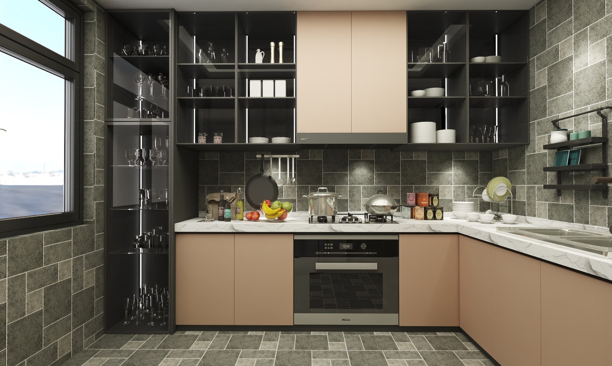 半開放式的廚房與餐廳之間,還加入了工業(yè)風(fēng)元素與工業(yè)風(fēng)元素,讓這一區(qū)域顯得更加多元化,不管是在櫥柜的選擇上,還是家具的選用,都十分的精致。