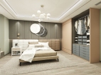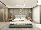 臥室空間具化為實(shí)用與美相互融的生命體,色彩的融合與雅致、布藝的質(zhì)樸、棉麻的柔軟、皮質(zhì)的柔軟無造作,不造型精巧,輕奢而時尚。輕奢布藝床延續(xù)了整個空間的輕奢基調(diào),輕奢優(yōu)雅的木飾背景線條搭配簡約大氣的布藝床,巧妙地塑造了一個“低調(diào)的奢華”居住空間。