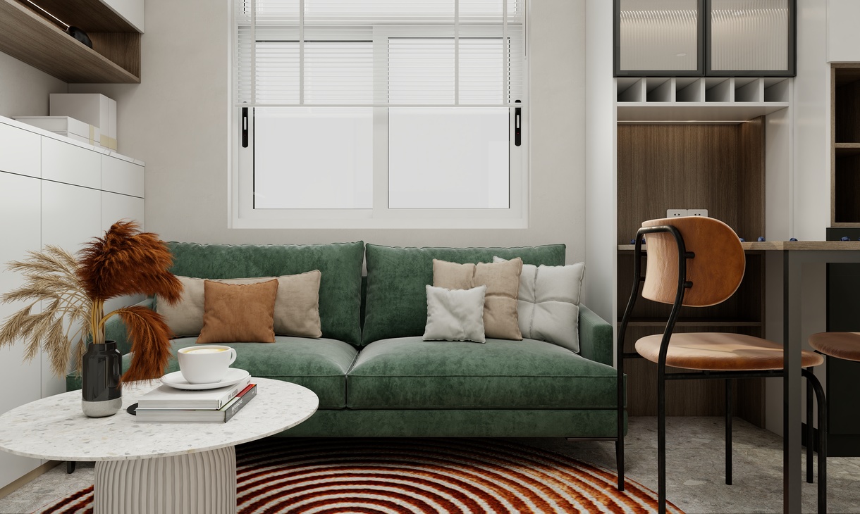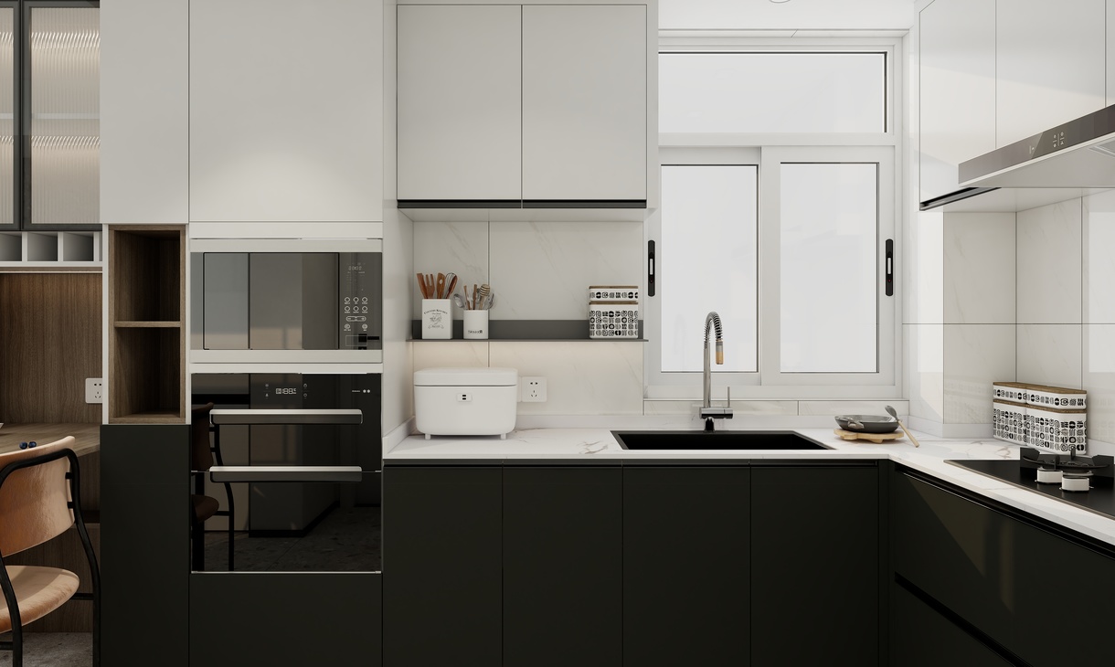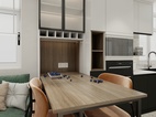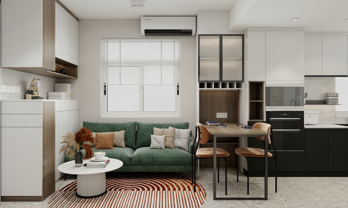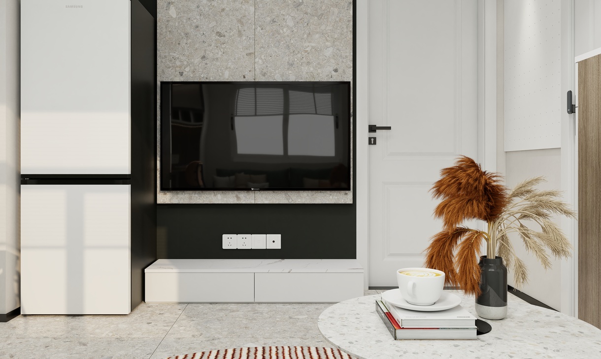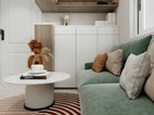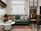 小戶型,現代簡約風。在考慮收納的同時滿足各個空間的功能需求。沙發旁鞋柜吊柜地柜設計,當季鞋類可以放吊柜,換季鞋可以放地柜。方便業主使用。餐桌采用折疊桌設計,在不吃飯時候增加客廳功能區域。拉出來也能當簡易工作臺,或者當廚房操作臺。