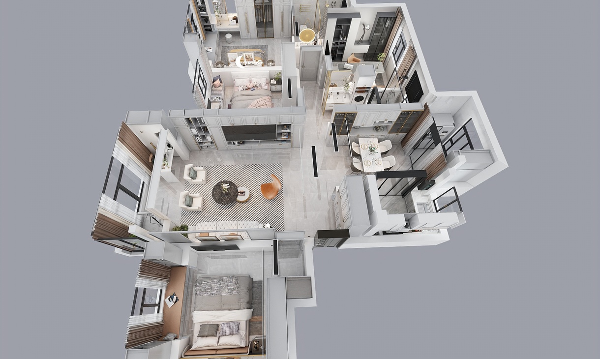 每個(gè)空間至少2張效果圖+1張全案全景圖展示,方案描述完整,所有空間需命名。