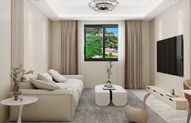電視背景墻用石材,是為了跟地面的瓷磚形成對比選用的仿爵士白巖板,整個背景墻看起來真是相當(dāng)?shù)暮啙嵈髿?/pre>