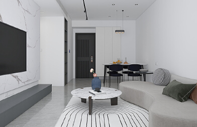 推開門進來第一眼就是一通到底的開闊視野,整體風(fēng)格和推開門進來第一眼就是一通到底的開闊視野,整體風(fēng)格和家具顏色基本上都是灰色調(diào),定制開放柜做備餐柜使用。家具顏色基本上都是灰色調(diào),定制開放柜做備餐柜使用。
