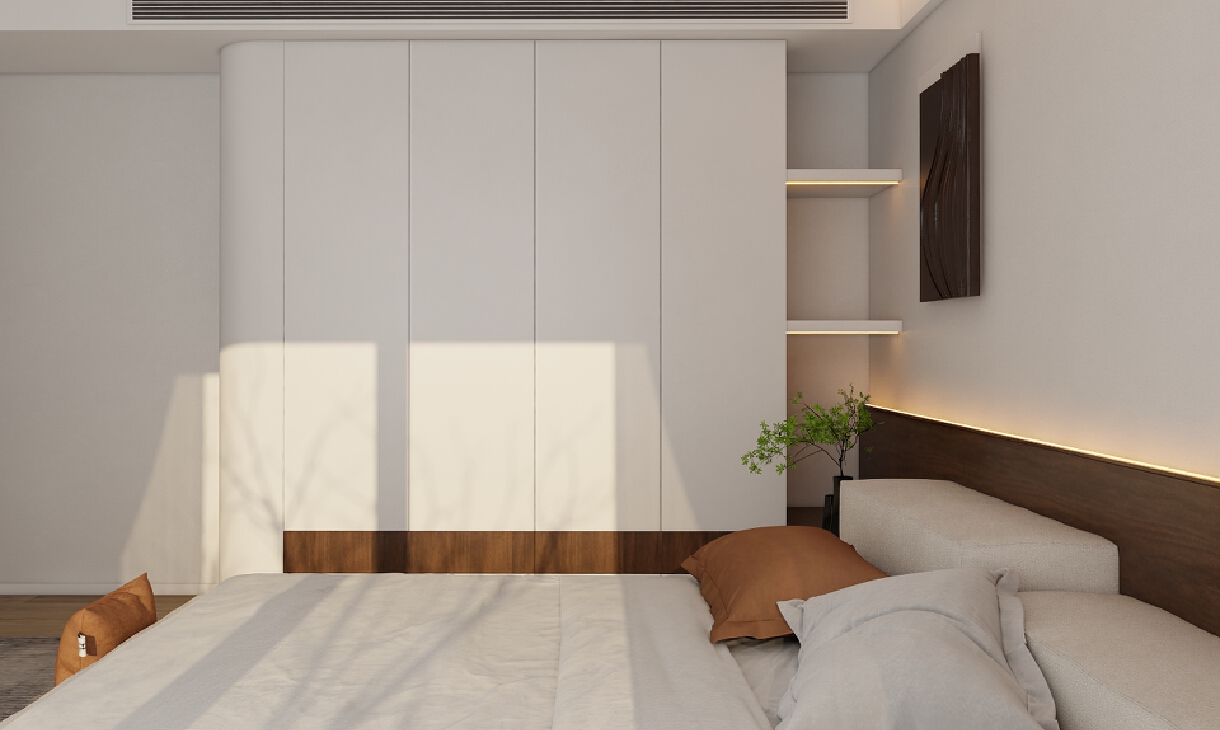 簡(jiǎn)潔的背景墻,穿插式的設(shè)計(jì)讓整體顯得更加的整潔