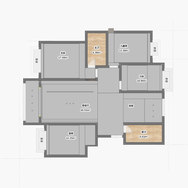 每個空間至少2張效果圖+1張全案全景圖展示,方案描述完整,所有空間需命名。