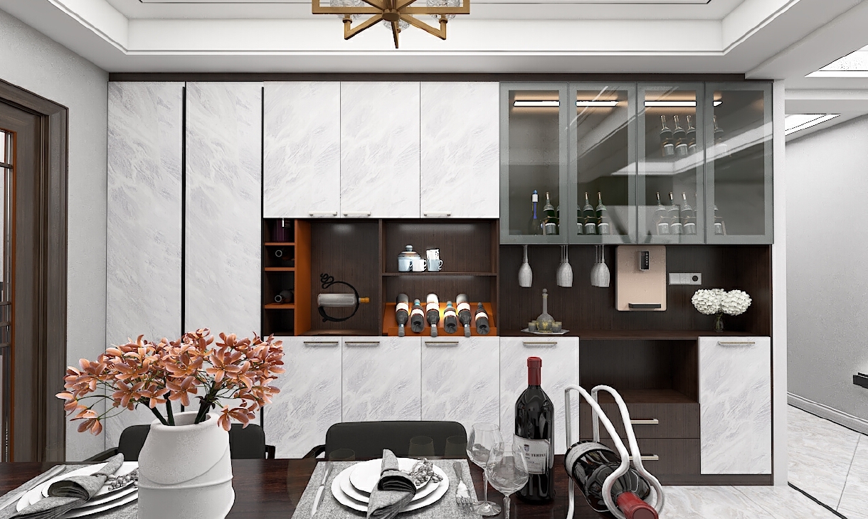 混搭風(fēng)客餐廳要求簡潔上檔次,臥室搭配玻璃門,有一點輕奢風(fēng)提高了檔次