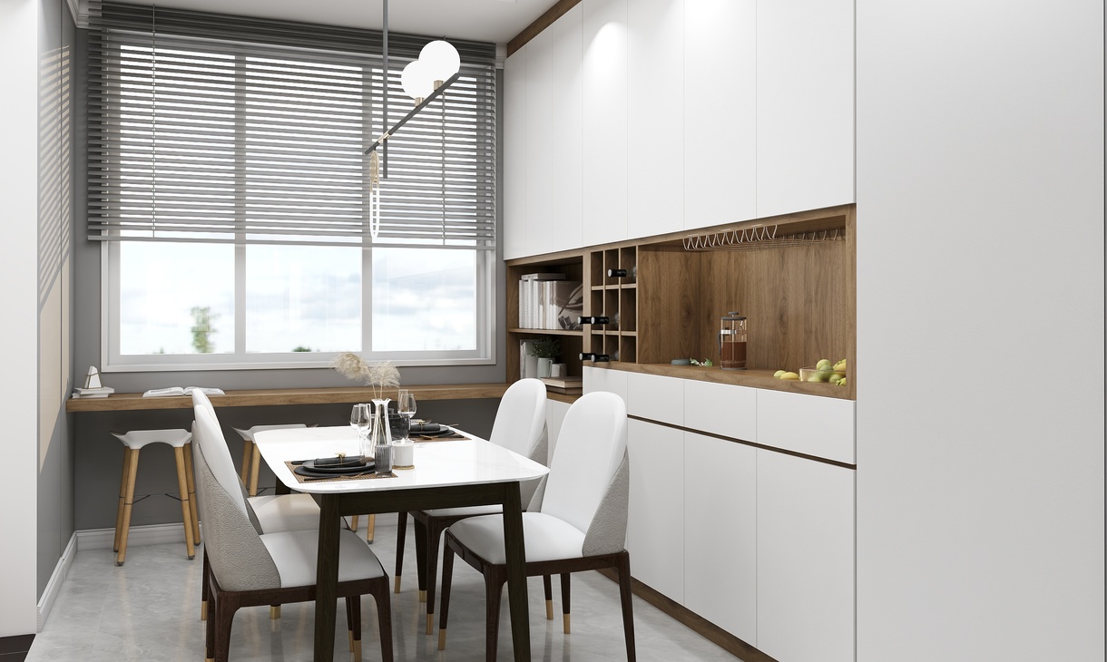 進門右側做鞋柜兼酒柜功能,左側鞋柜主要起裝飾作用,分割客廳空間與餐廳空間