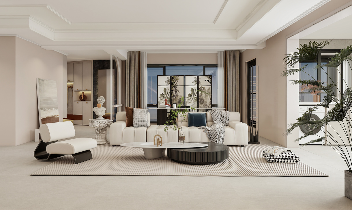 每個空間至少2張效果圖+1張全案全景圖展示,方案描述完整,所有空間需命名。
