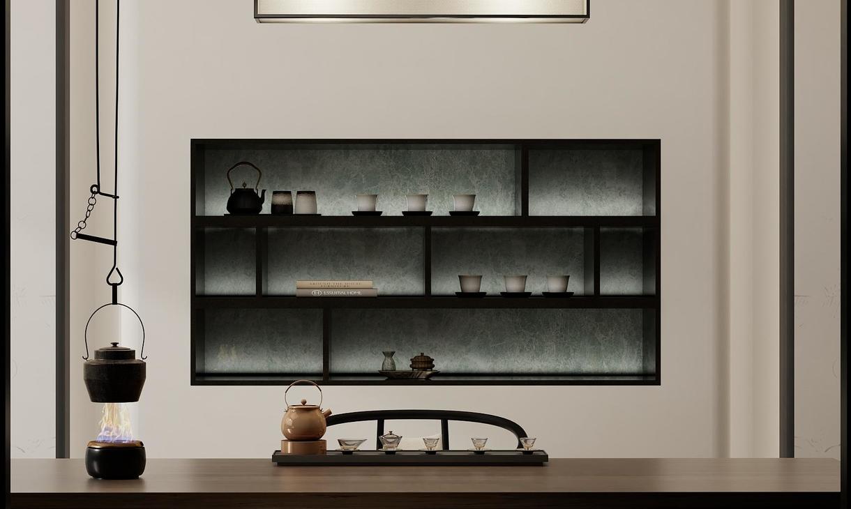 “茶韻”方案的設(shè)計理念是以茶文化為核心,融入新中式的簡約美學(xué),通過線條與光影的巧妙運(yùn)用,營造出寧靜雅致的氛圍,體現(xiàn)出茶道的靜心與雅趣,追求心靈的平和與寧靜。