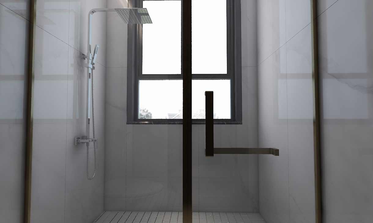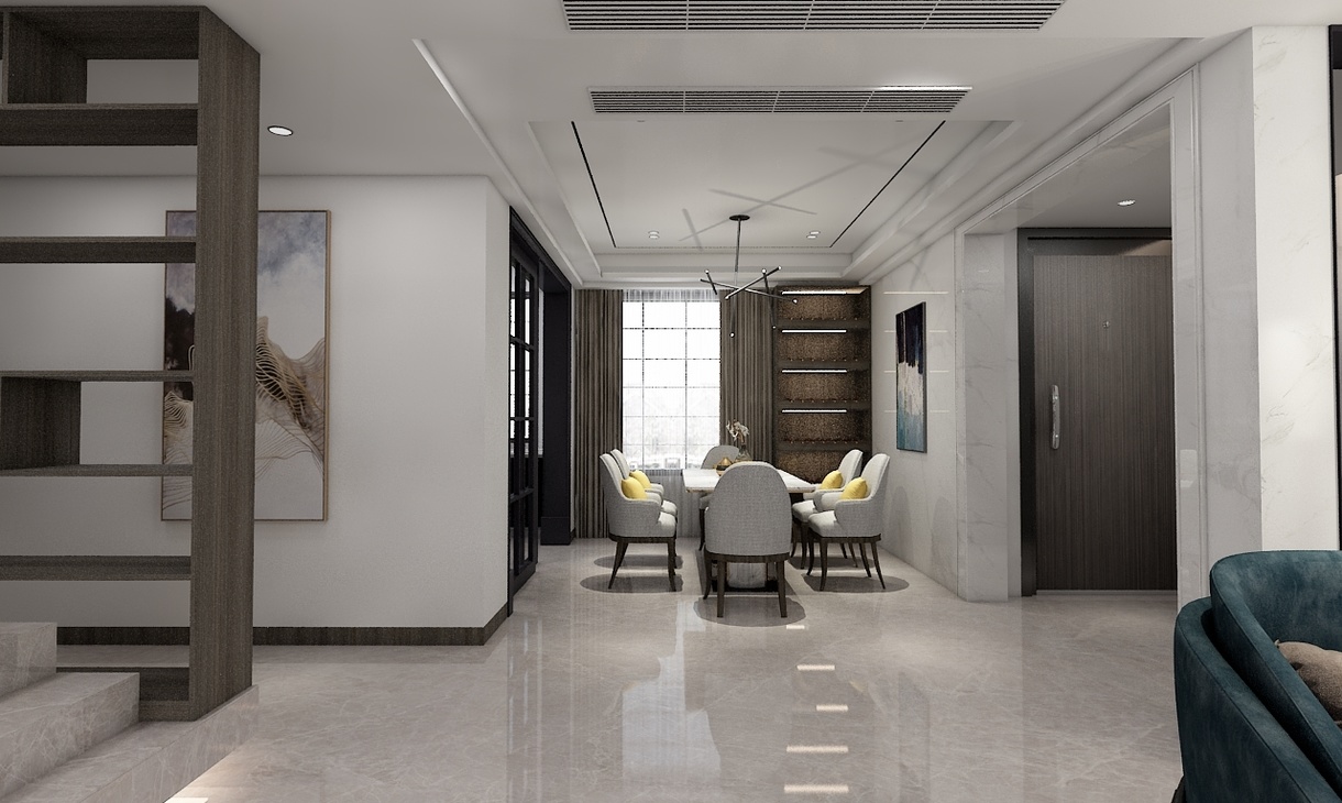 地面深色與墻面淺色大理石紋理形成鮮明對比