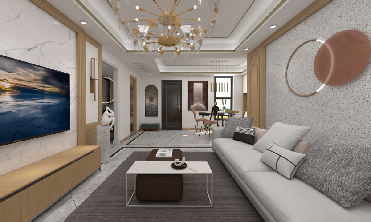 每個空間至少2張效果圖+1張全案全景圖展示,方案描述完整,所有空間需命名。