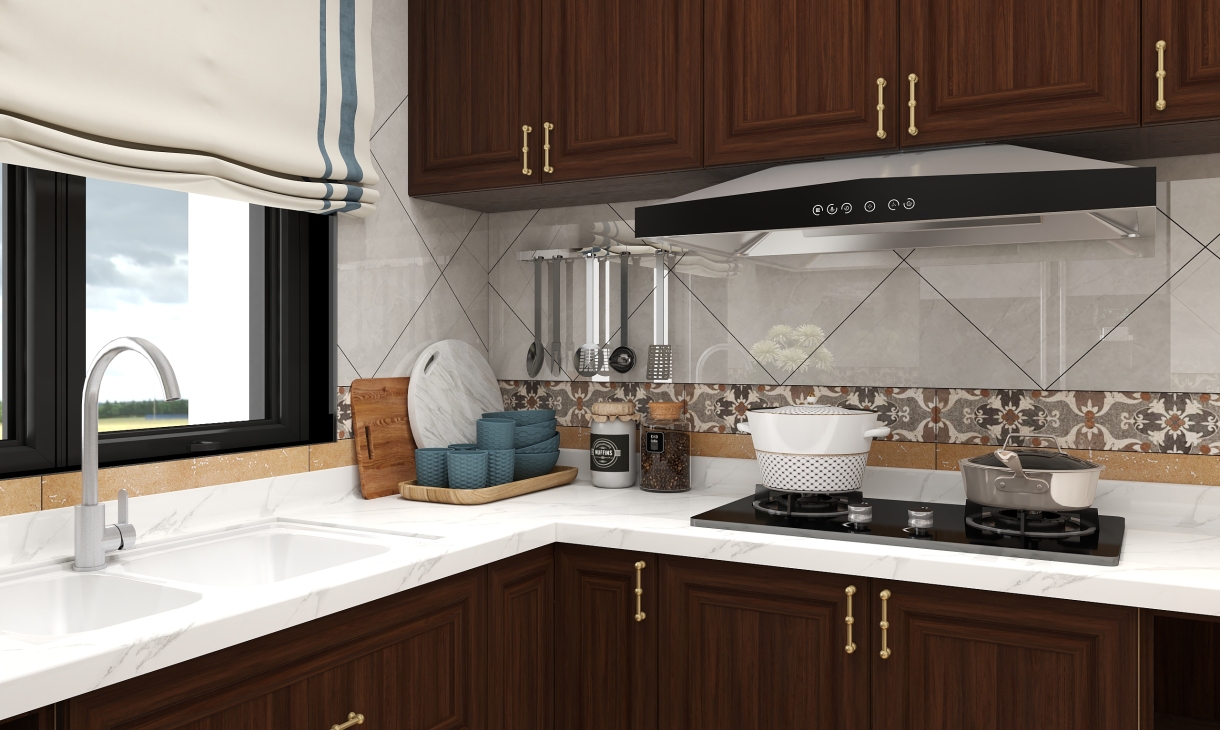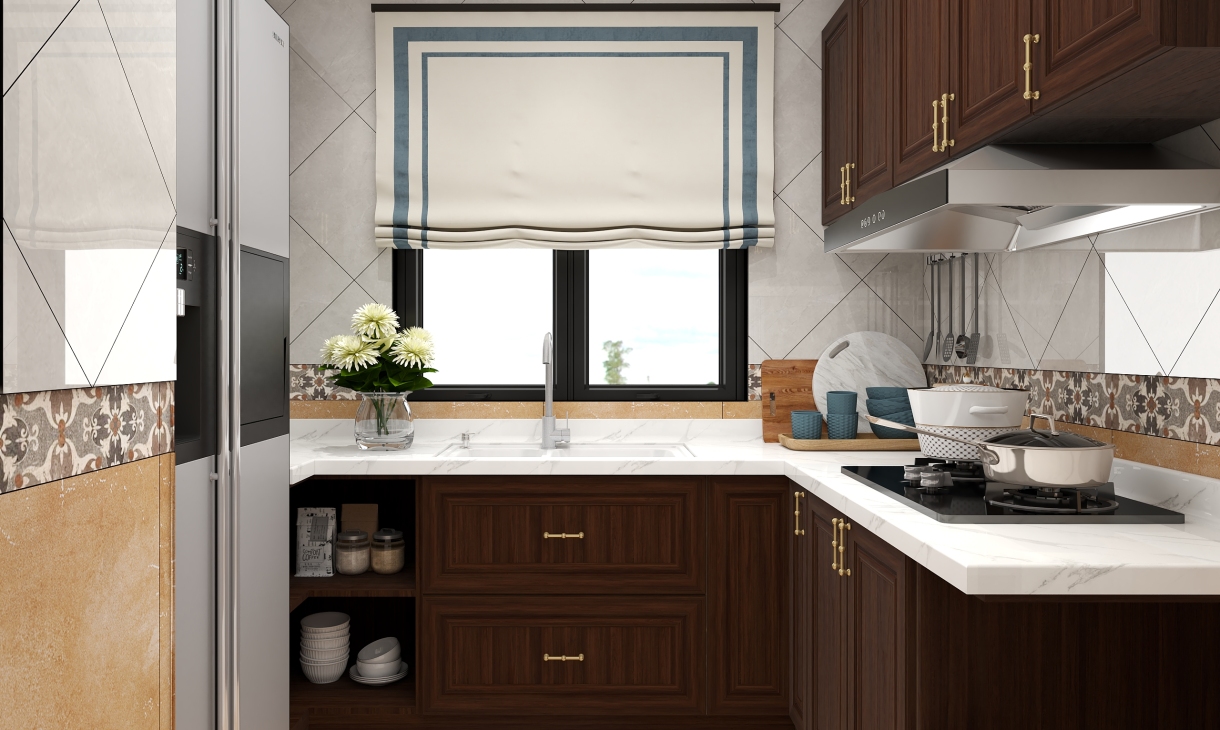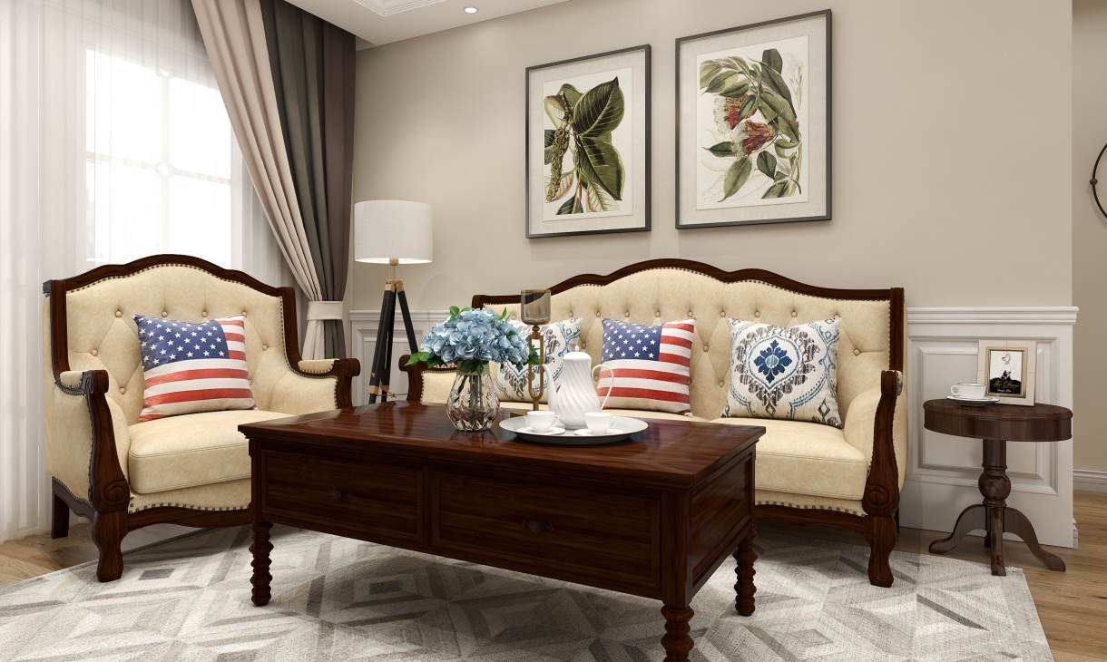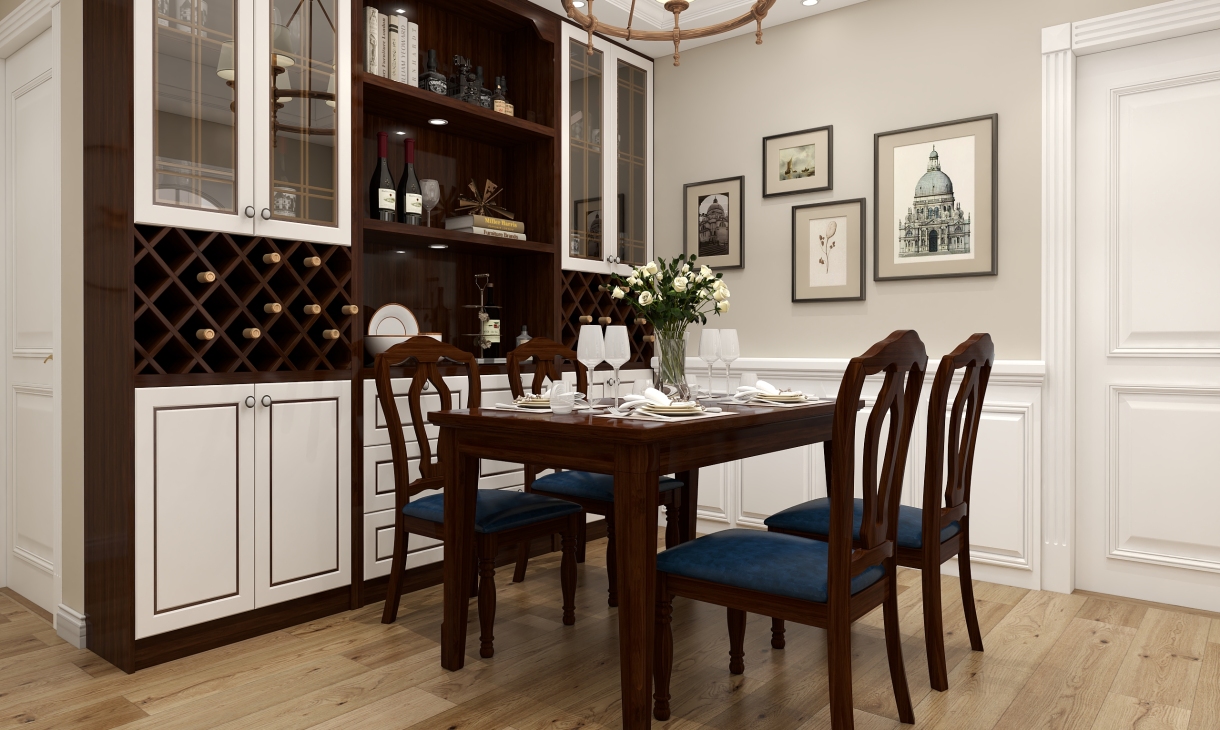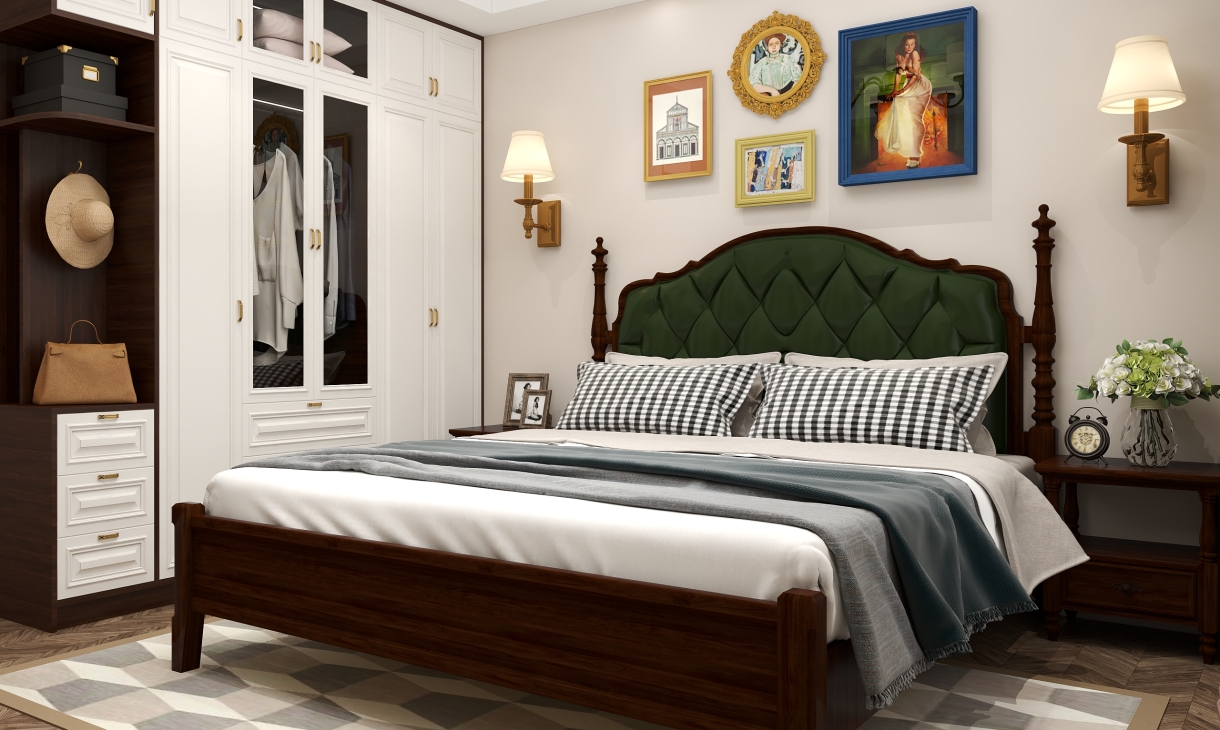 優(yōu)雅的暗棕色簡美家具,將經(jīng)典的精粹延續(xù)現(xiàn)代,高貴深沉而不失自在隨意。軟飾上通過“花鳥葉”的元素和造舊的手法,將美式情懷表達(dá)得淋漓盡致,每個(gè)角落都能感受自然浪漫的田園氣息。
