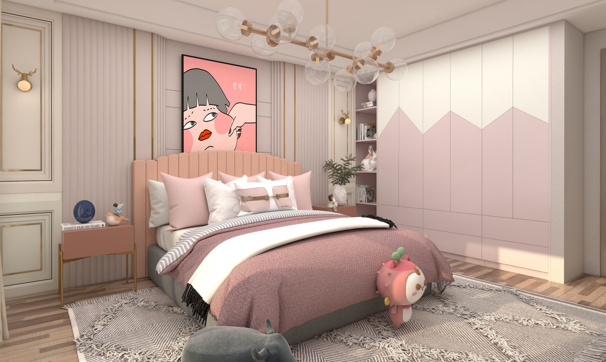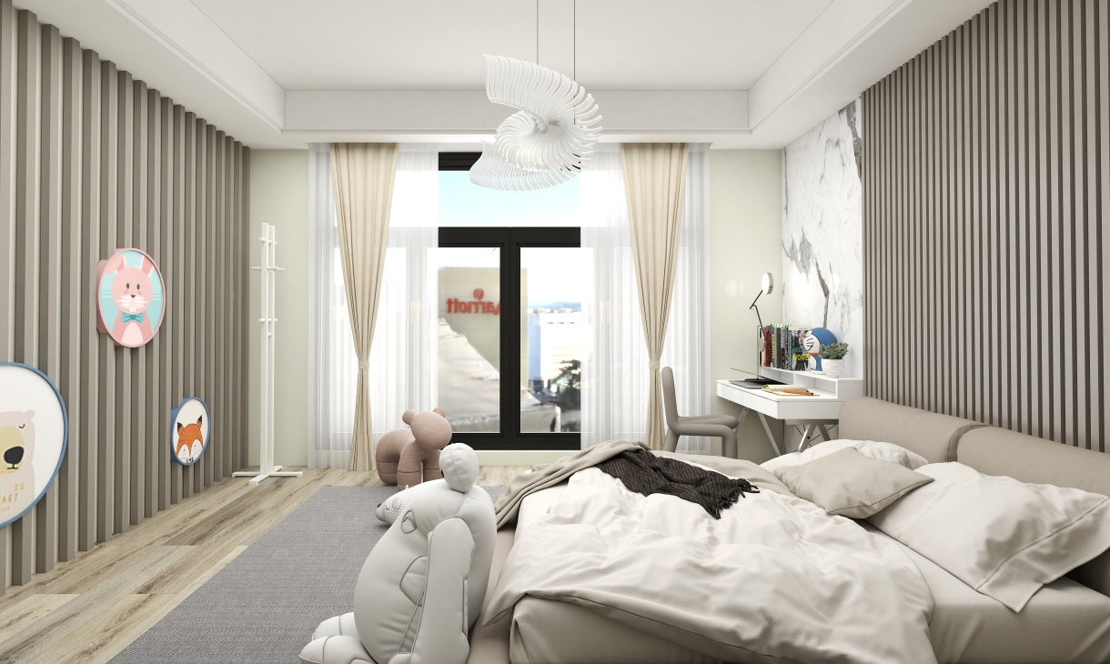 效果圖:全屋概覽效果圖、客廳效果圖、餐廳效果圖、廚房效果圖、兒童房效果圖、主臥效果圖