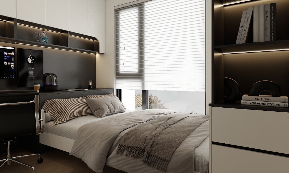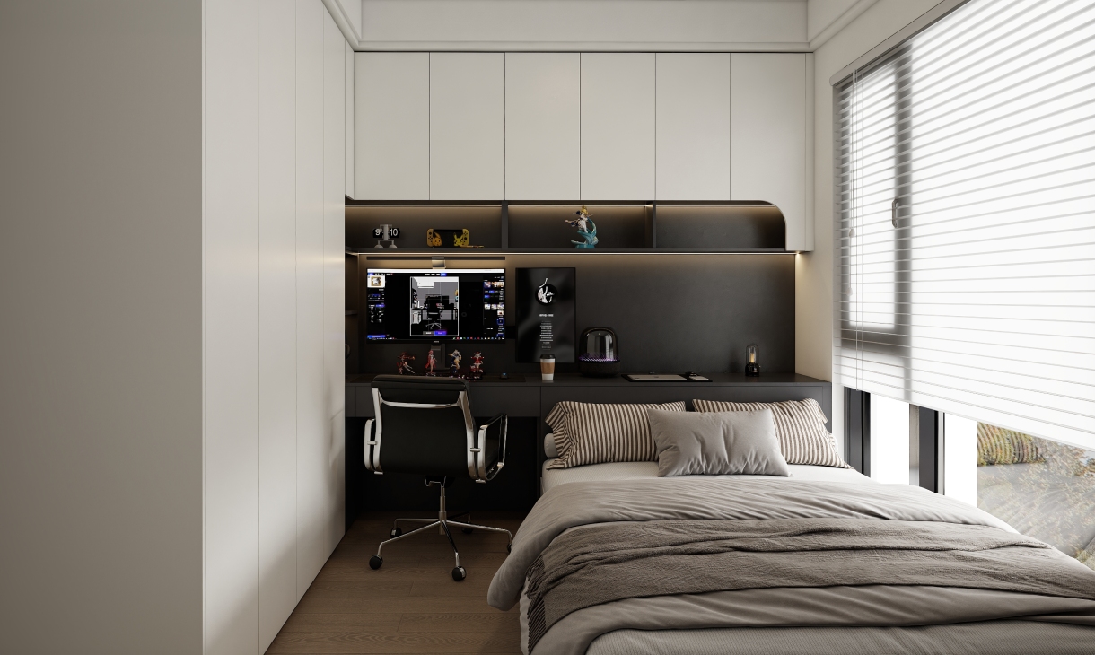 以深色木紋為主色調,保留必要的整潔外觀,減少不必要的元素,通過創新思維來營造簡潔明快的空間氛圍