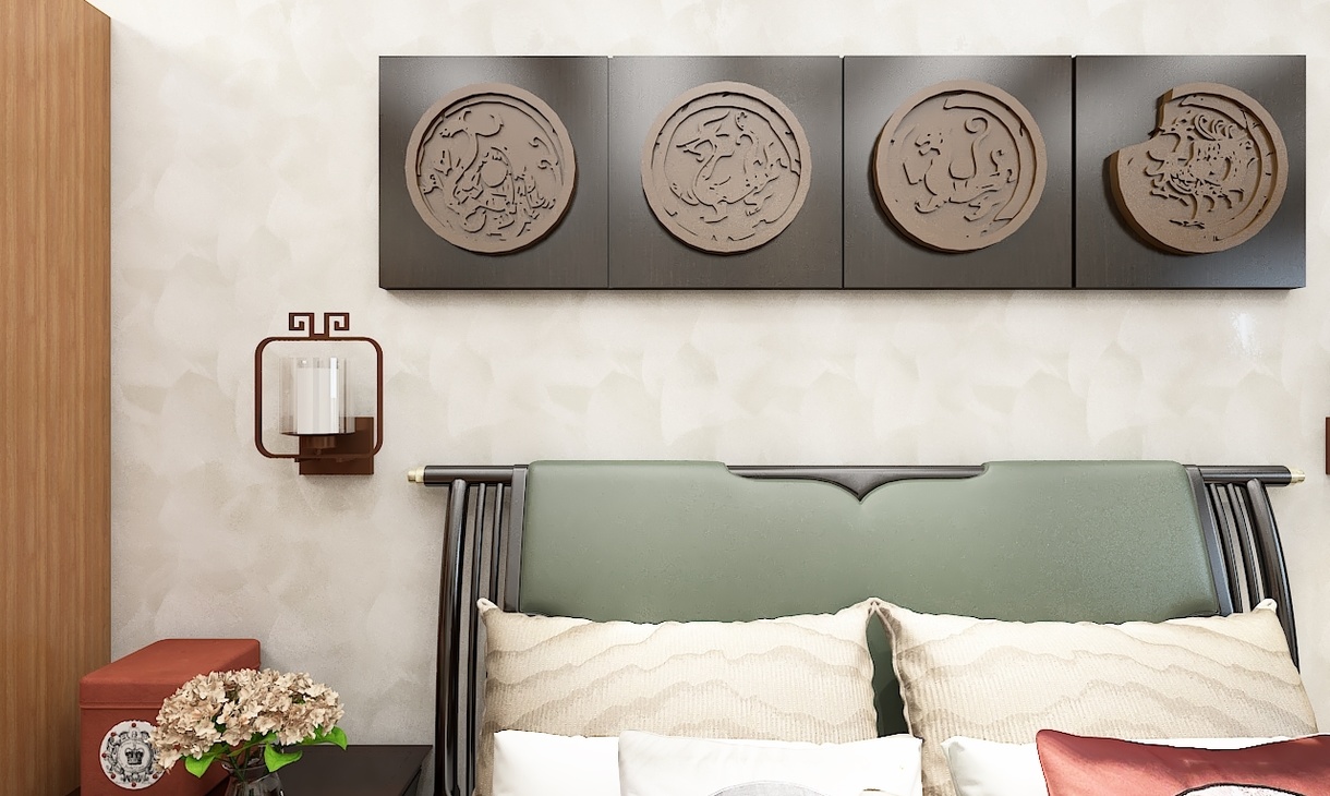 新中式的家居設(shè)計(jì),摒棄了呆板沉悶,加入了現(xiàn)代風(fēng)格的簡(jiǎn)約實(shí)用,呈現(xiàn)出的裝飾效果是既美觀又很有內(nèi)涵的。使用中式的墻面設(shè)計(jì),營(yíng)造出書(shū)香禪意的氣氛。