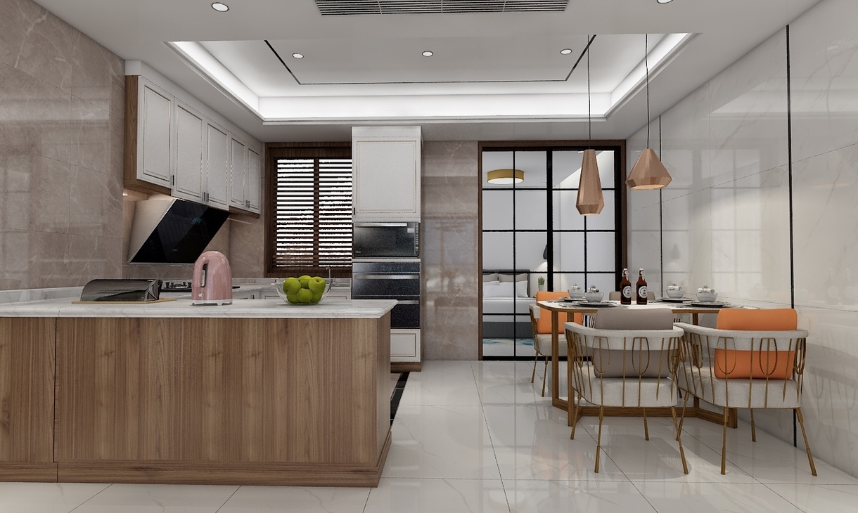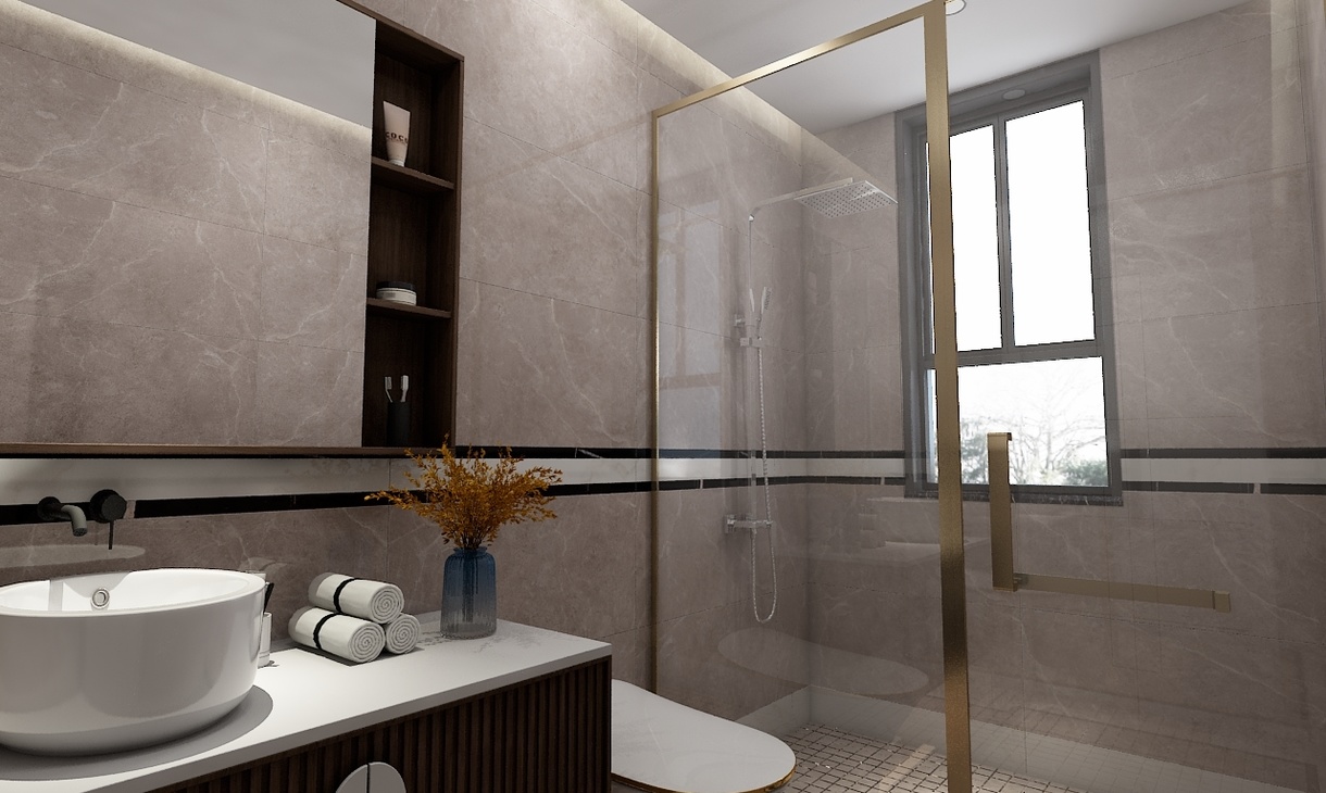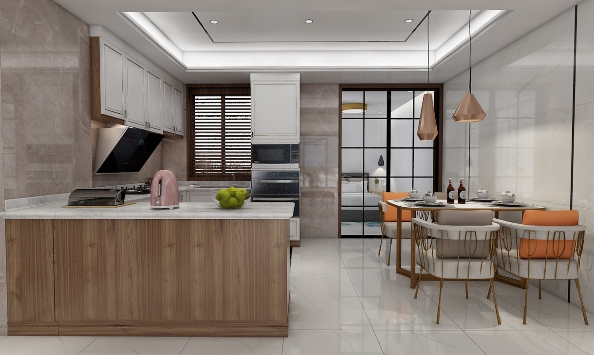 現代木紋的溫馨與大理石的時尚。金屬的組合