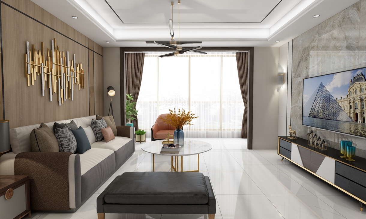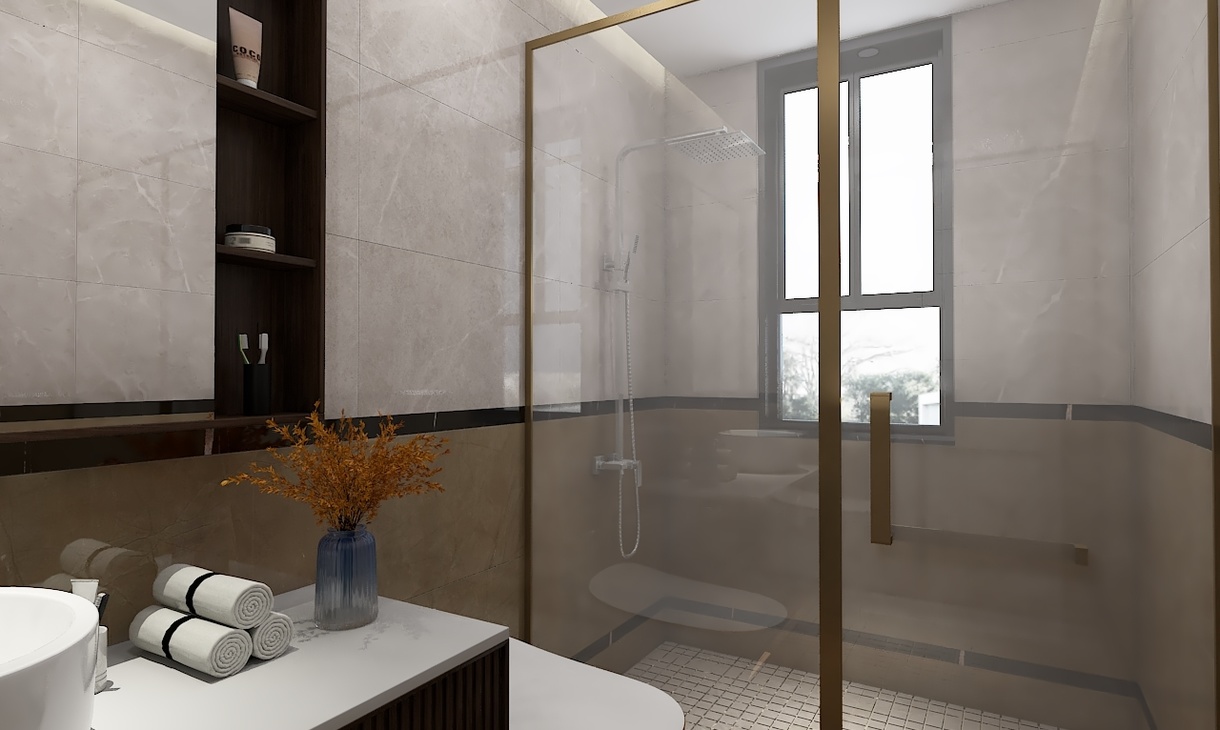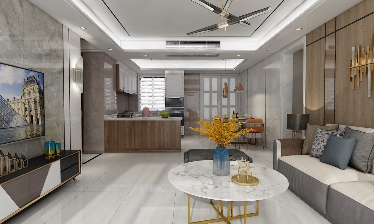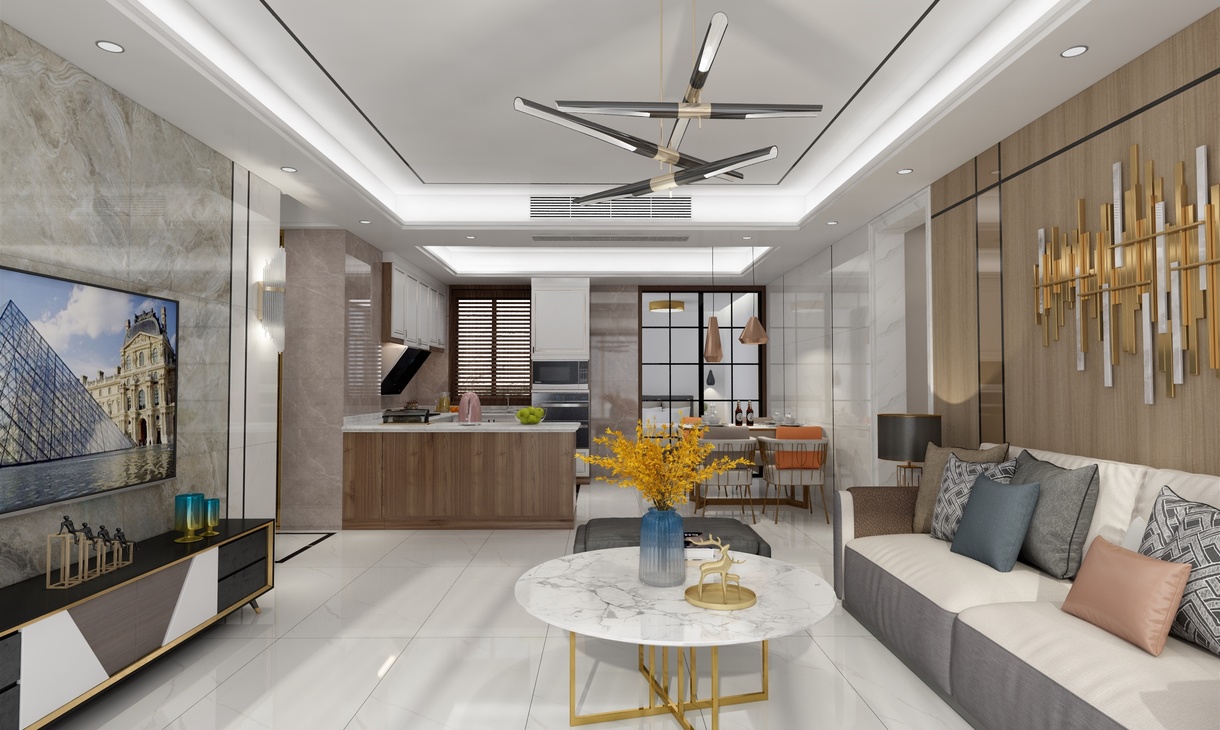 現代木紋的溫馨與大理石的時尚。金屬的組合