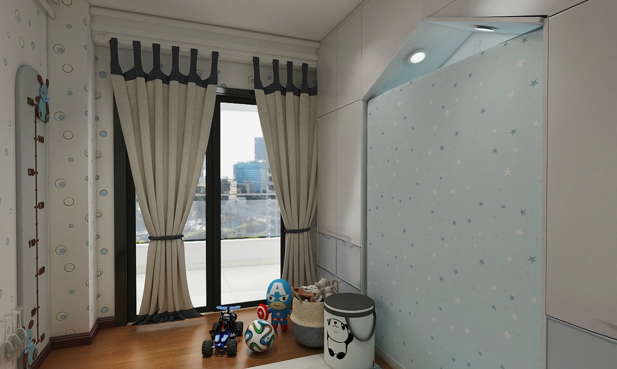 客戶希望整個(gè)空間整潔溫馨。盡量留大點(diǎn)區(qū)域可供小孩玩耍,家中有2個(gè)男孩,希望培養(yǎng)他們從小學(xué)會(huì)收納整理能力。在軟裝搭配中,采用隱形拉手式柜體,減少磕碰,另外茶幾進(jìn)行組合式,可進(jìn)行自行調(diào)整。整體色調(diào)以白和黃為主體色調(diào),顯得寬敞明亮。