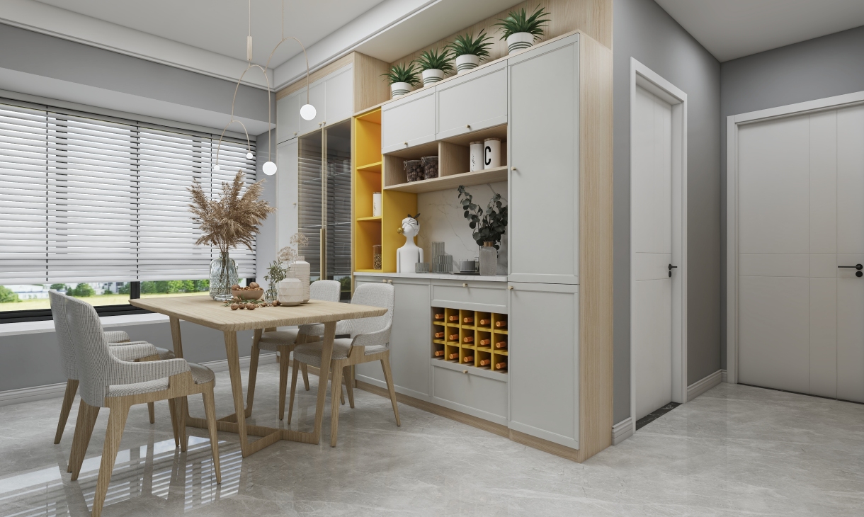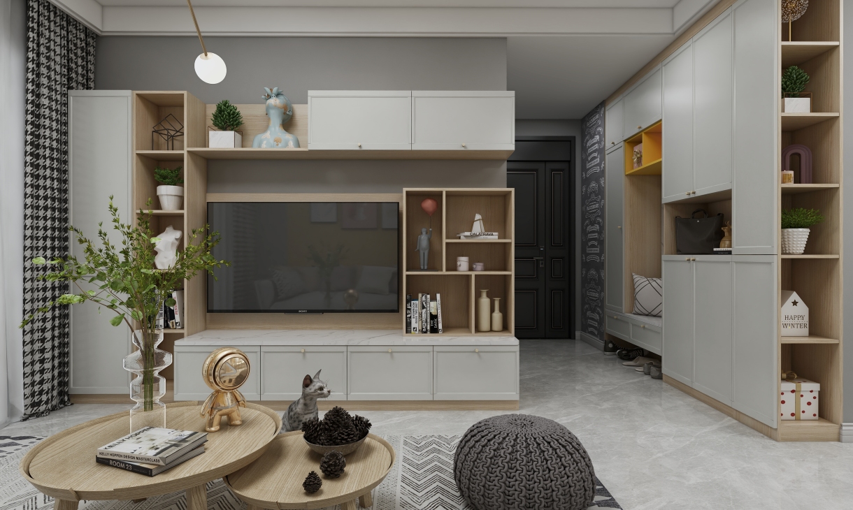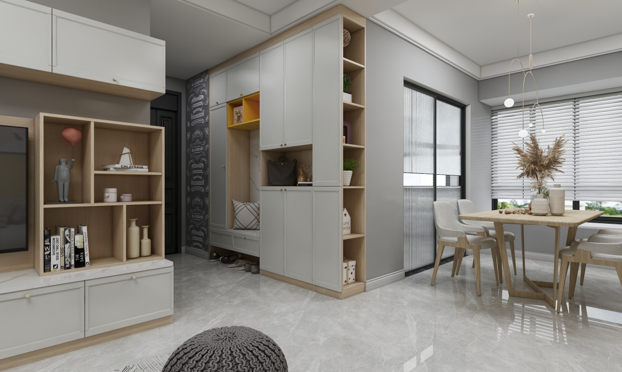 每個空間至少2張效果圖+1張全案全景圖展示,方案描述完整,所有空間需命名。