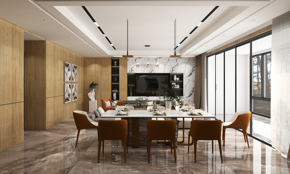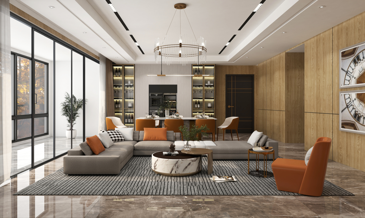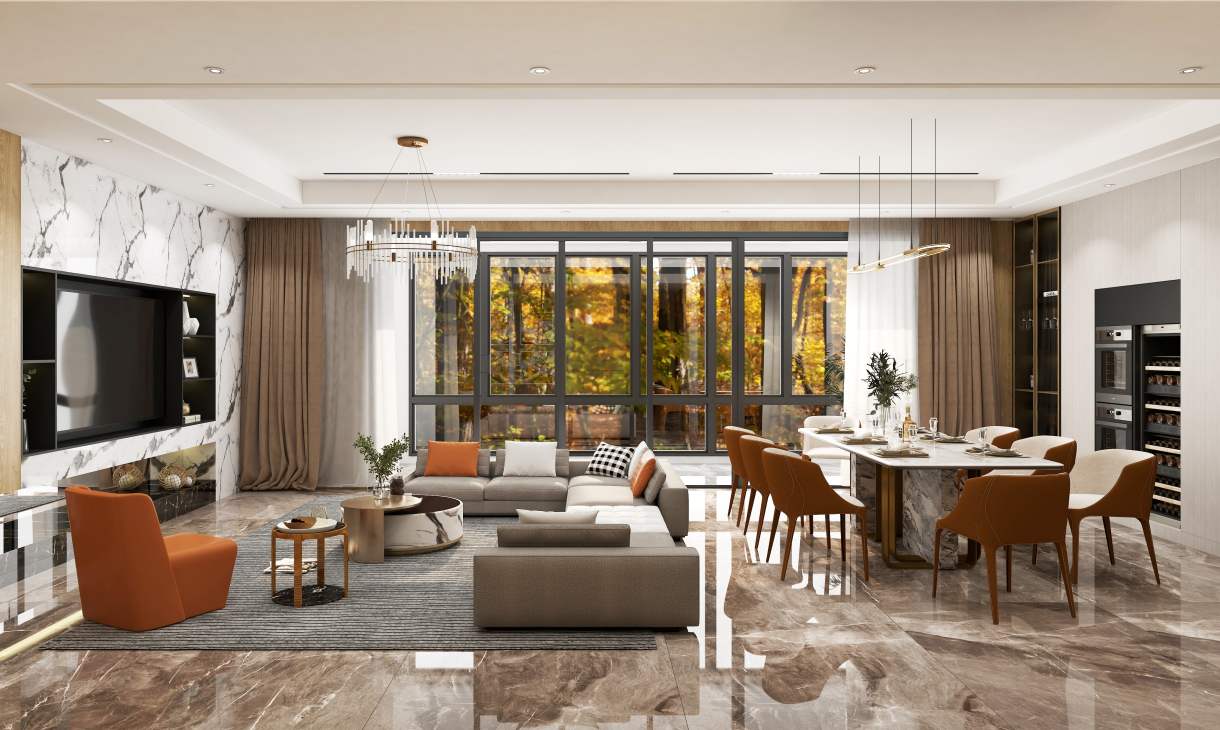 每個(gè)空間至少2張效果圖+1張全案全景圖展示,方案描述完整,所有空間需命名。
