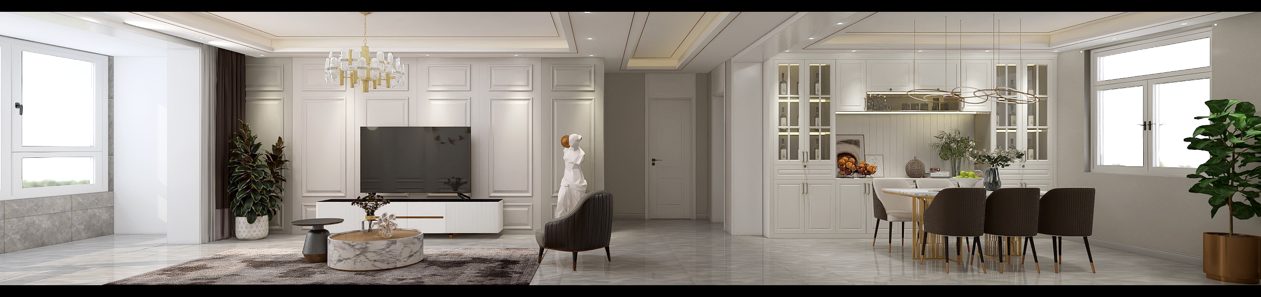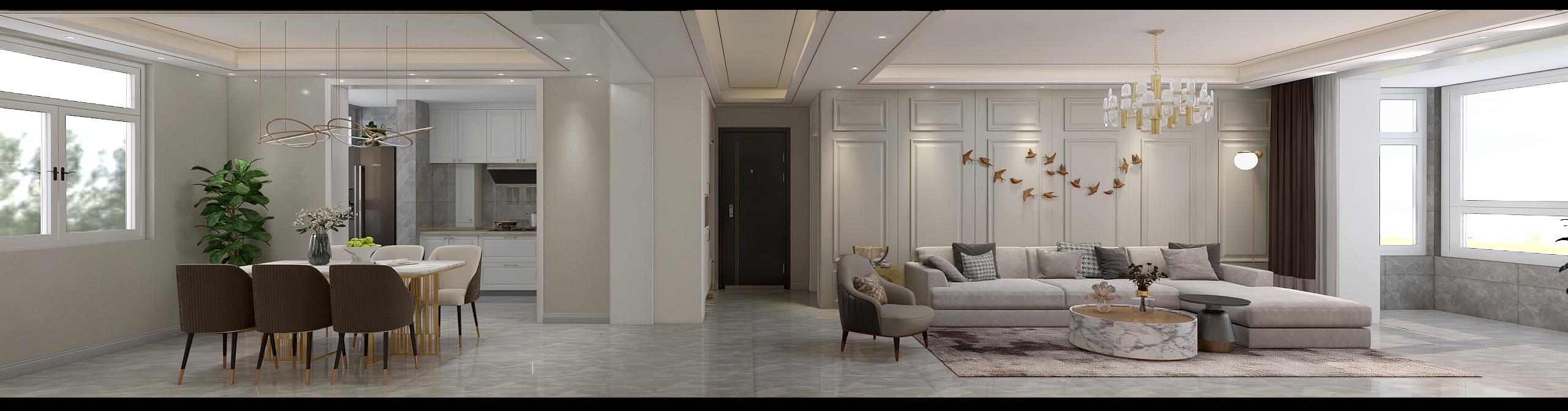 每個空間至少2張效果圖+1張全案全景圖展示,方案描述完整,所有空間需命名。