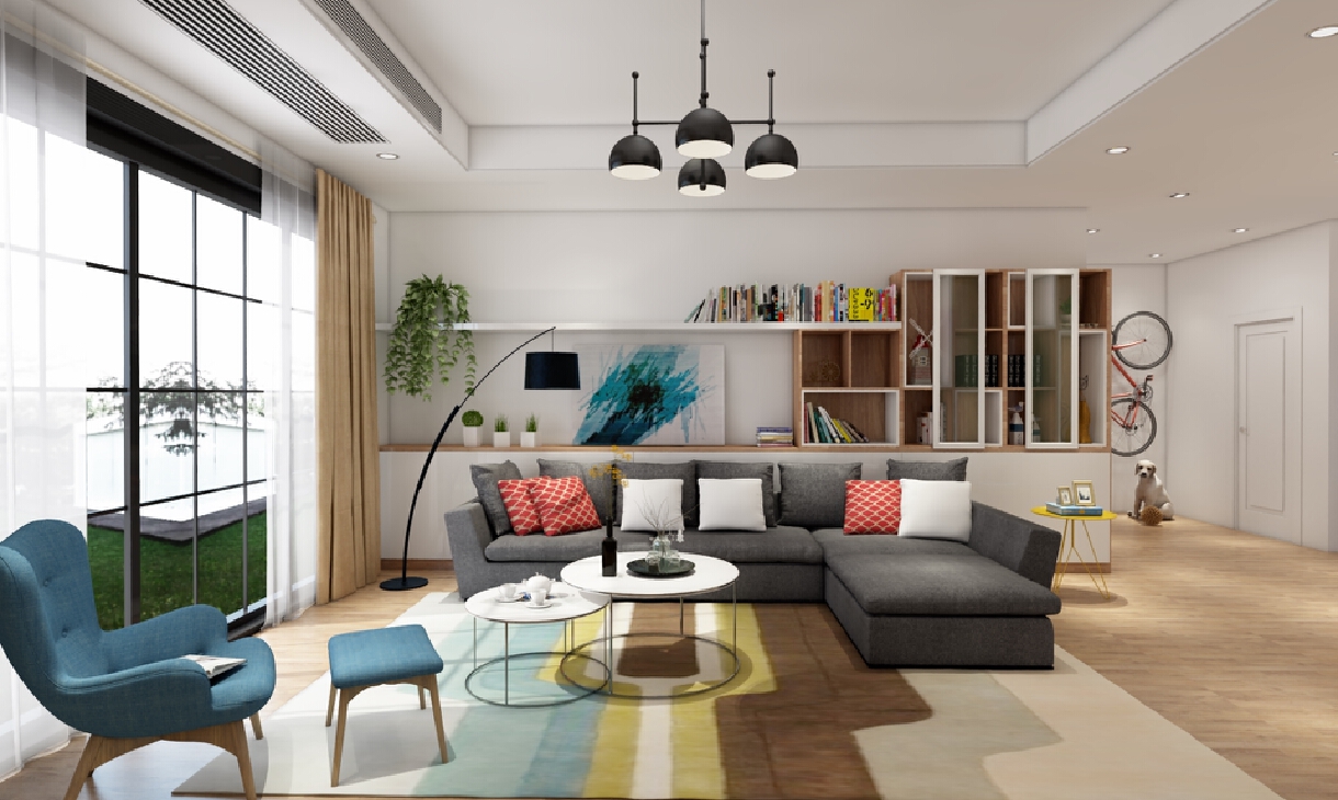 本案的設計風格是北歐風格,整體給人清爽簡潔干凈的干凈,從很大的程度上闡述了一種簡單灑脫的生活態度,也反應了現代生活重壓下人們對極簡生活追求。 整個家的空間主體色彩都運用了蒙德里安的作品顏色來豐富,與空間中的木地板、木質家具相融洽。創造出舒適的居住范圍,加上屋里的綠植點綴,滿足了人們崇尚自然的心理。