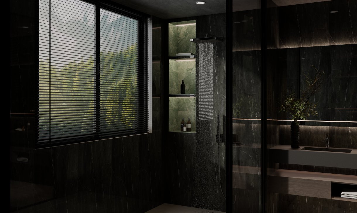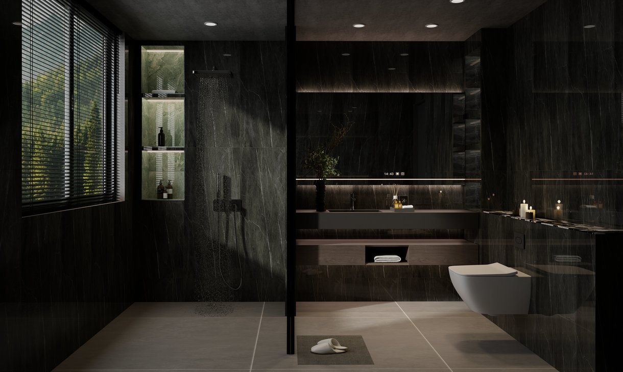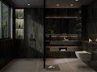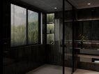 通過黑暗與光影的結(jié)合,打造寧靜禪意的衛(wèi)浴空間。深色石材與木質(zhì)元素營造出沉穩(wěn)視覺效果,精心布置的燈光打破單調(diào),創(chuàng)造豐富光影層次。