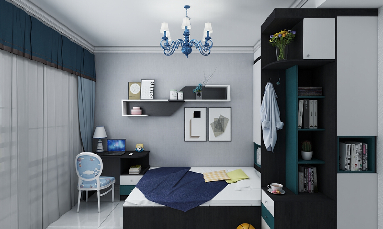 現代時尚的設計元素,客戶還是學生,總認為靠墻睡的比較踏實。因空間布局限制,最終此方案讓客戶很滿意。此方案滿足一切需求。