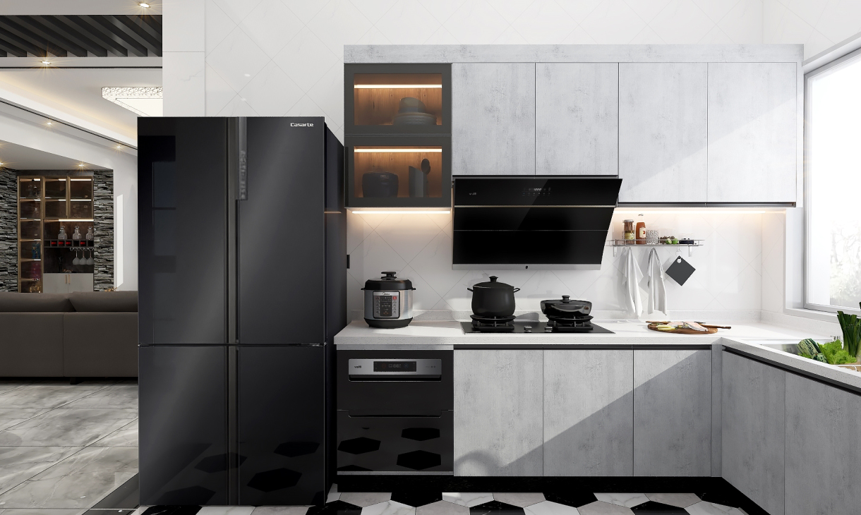 菱形墻磚加上水泥白柜體搭配,凸顯出一個小小廚房卻能給人干凈整潔的感覺。