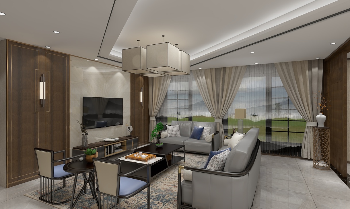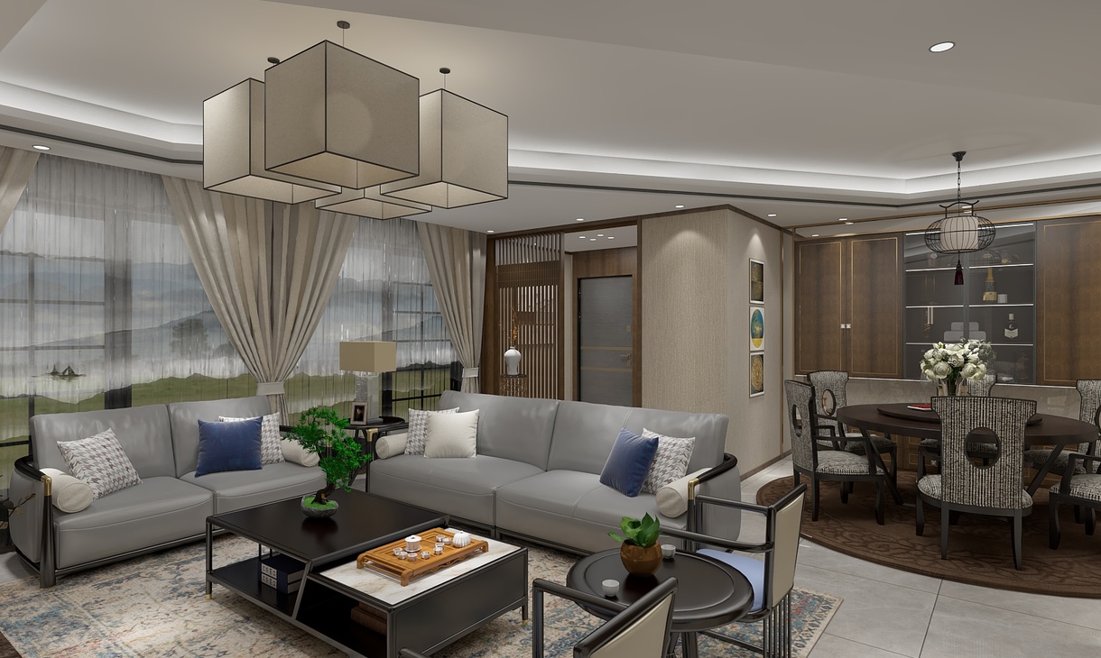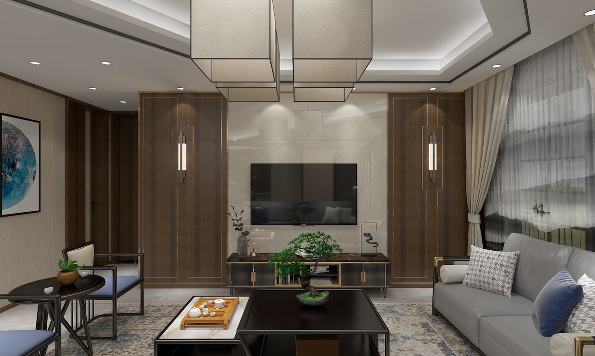 根據客戶需求綜合考量,以新中式為主,現代風格為輔,打造滿足客戶需求的現代中式空間。