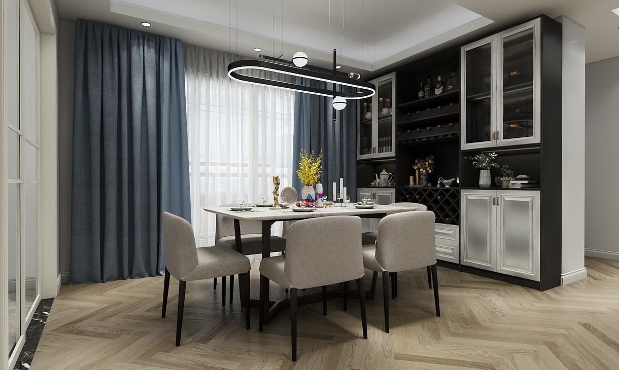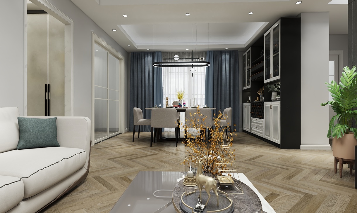 現代輕奢風格,豪奢不是最重要的,溫暖、輕松、愉悅、充滿生活氣息的品質生活才是真正的需求所在。輕奢風格的空間以金屬、皮革的中性色調為主,用色彩的純度傳遞細膩的質感。造型簡潔,線條流暢的家具組合搭配,營造出穩定、協調、溫馨的空間感受,滿足現代年輕家庭的輕奢需求。