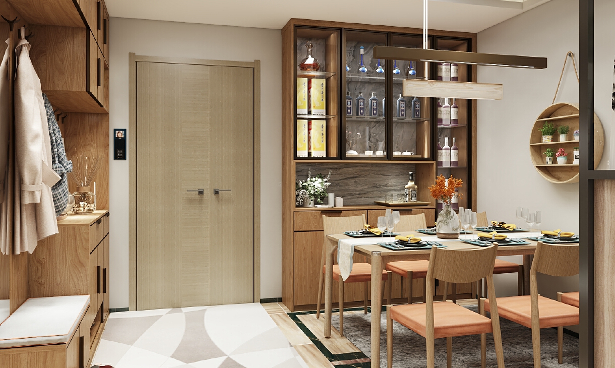 本方案為通達(dá)地產(chǎn)公園壹號(hào)B戶型設(shè)計(jì)方案。在設(shè)計(jì)之初選定現(xiàn)代新中式風(fēng)格,整體色彩搭配上選擇中式木紋與當(dāng)下主流高級(jí)灰,造型上摒棄了傳統(tǒng)新中式的金屬條鑲嵌工藝,以一種現(xiàn)代板式加黑色合金套框工藝板件呈現(xiàn)出一種簡(jiǎn)單有不失厚重的新中式風(fēng)格。