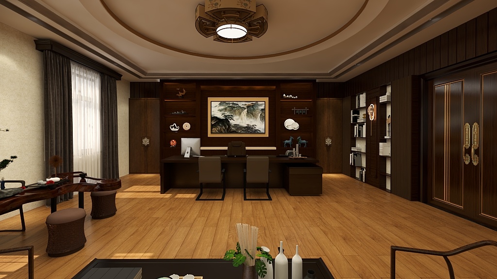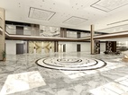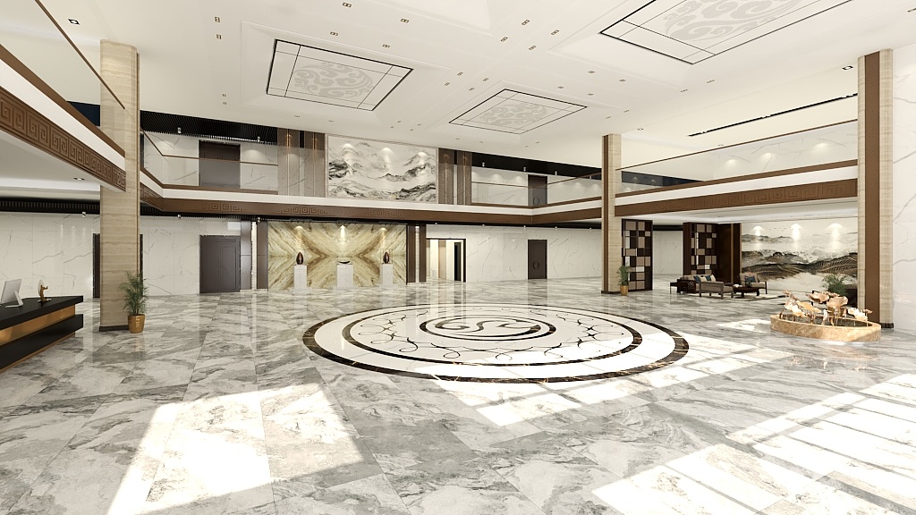 1、新中式中空辦公大堂  2、遠(yuǎn)山灰  3、水刀拼花