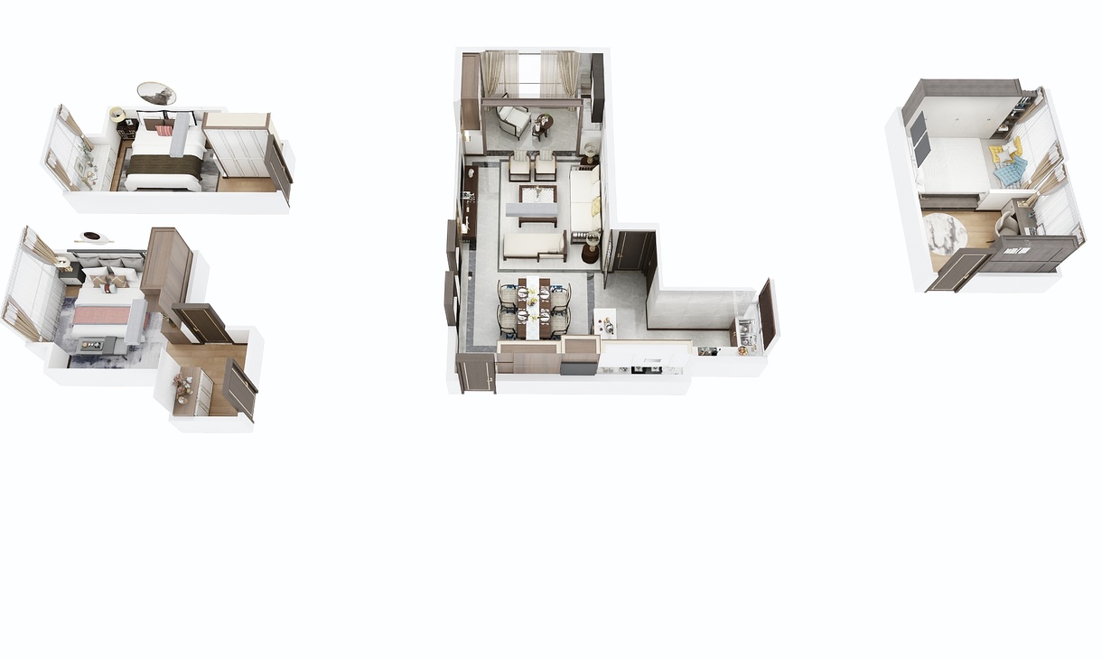 每個(gè)空間至少2張效果圖+1張全案全景圖展示,方案描述完整,所有空間需命名。