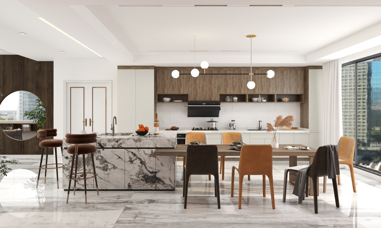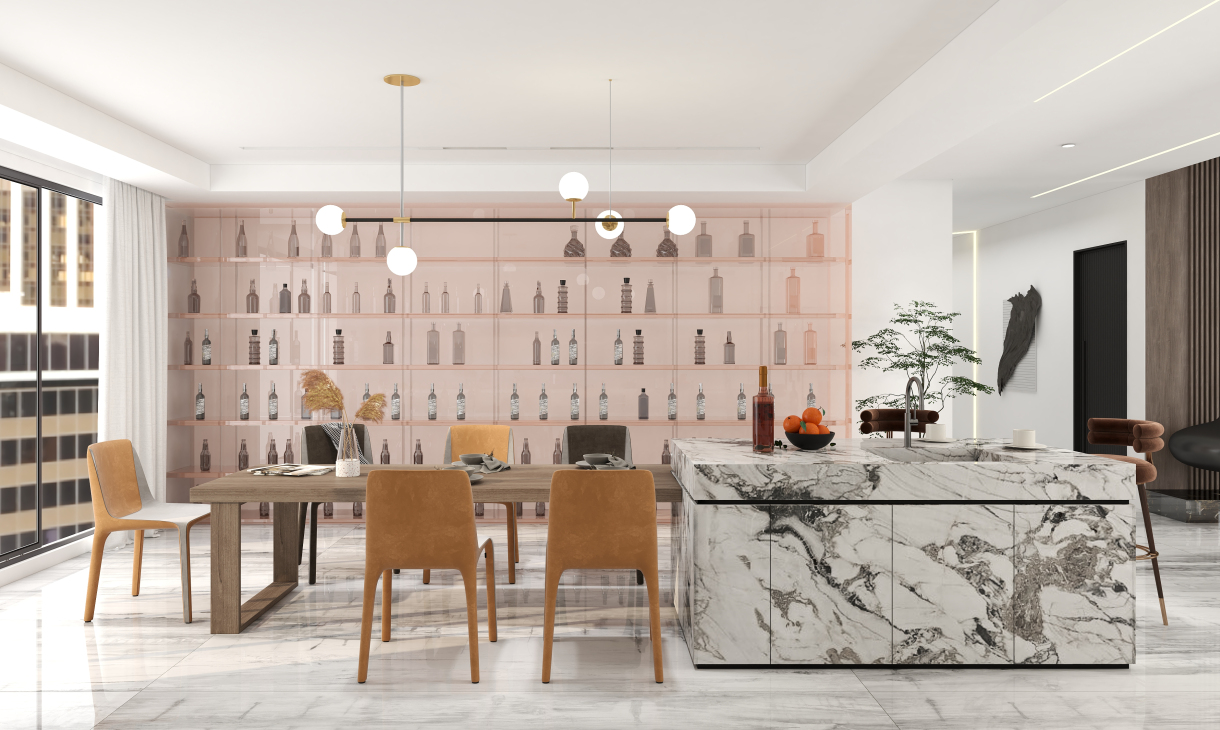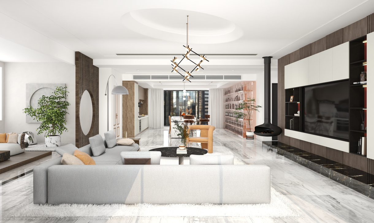 每個空間至少2張效果圖+1張全案全景圖展示,方案描述完整,所有空間需命名。