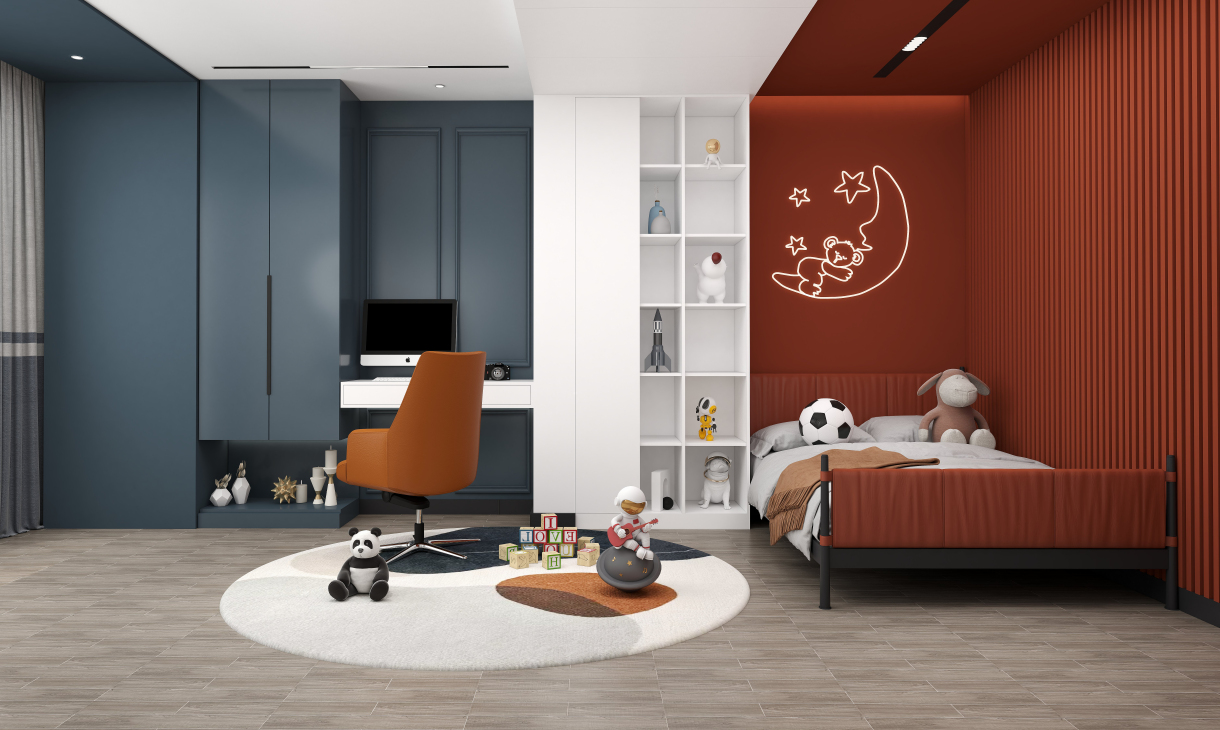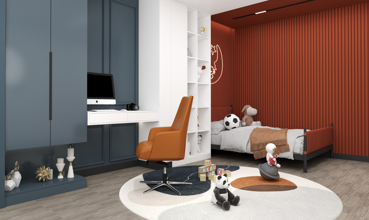 無(wú)主燈設(shè)計(jì),極酷的顏色搭配,呈現(xiàn)高級(jí)感男孩房空間