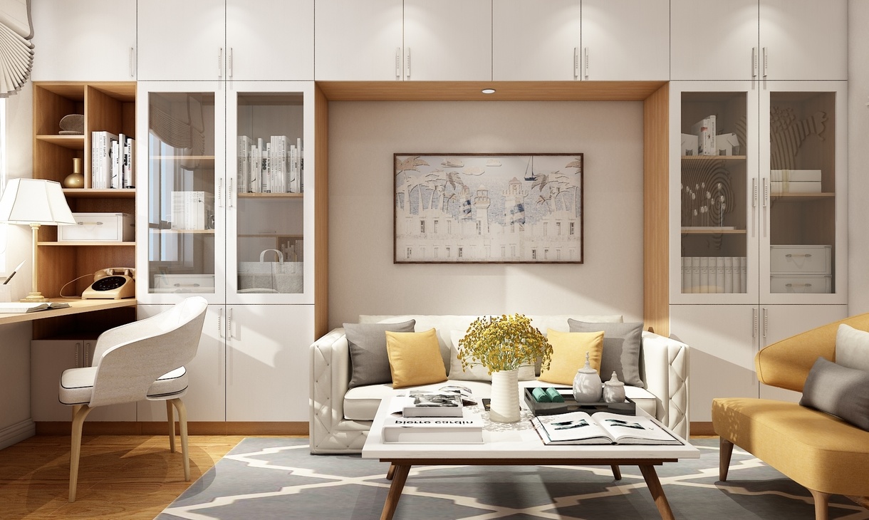書房整體以暖色調(diào)為主,舒適簡潔,書房可作為工作、學(xué)習(xí)的地方,也可以當(dāng)做閑時(shí)休息區(qū)。