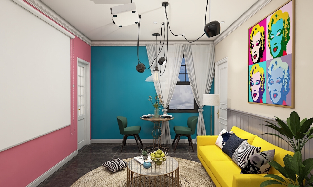 高飽和度的色彩碰撞,經典的再造重組,波普風格裝飾畫點亮全屋,讓小小的一居室也有自己的性格特性