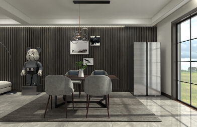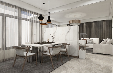 客餐廳整體以中性色調搭為主與多種顏色搭配組合,大理石桌面等多種材質的碰撞,在簡約的線條中,打造出不一樣的變化。