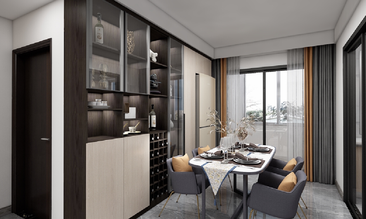 1.三室兩廳,業主需求保留兩室,設計獨立書房,整體設計以低調的奢華 2.整體布局為極簡,沒有過多的累贅,簡單卻不失高貴 3.整體色調采用深色調,軟裝呼應整體,加以少量愛馬仕橙的元素點綴整體