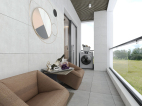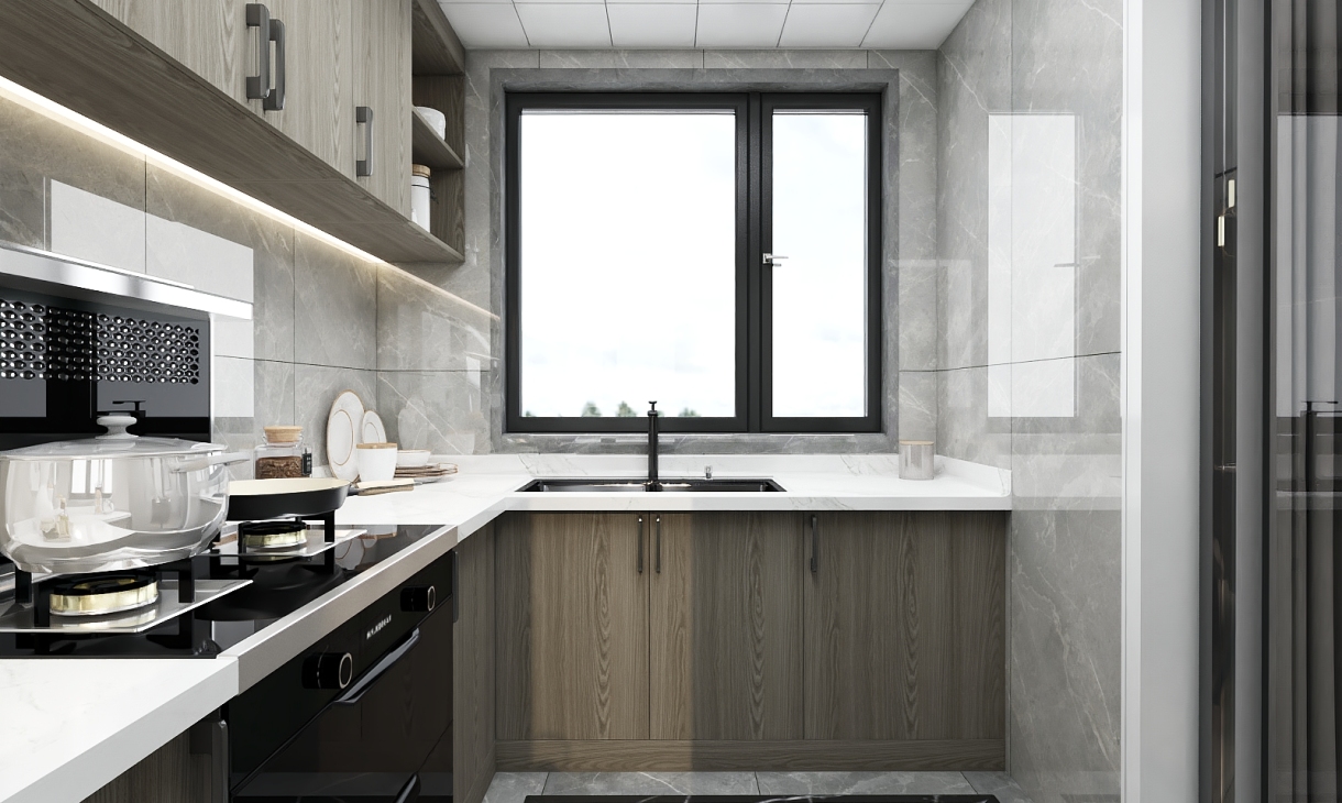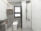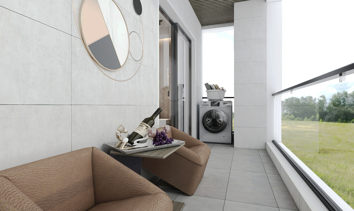 延續雅士白背景的連貫感使整體空間顯得簡潔干凈。木地板與瓷磚的碰撞有不同于普通設計的高級感。曲線的餐椅顯得與眾不同,簡單的線條打造個性生活。