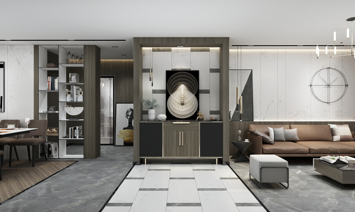 玄關用了雙色拼的造型做的與眾不同,卻又完美融合整體,巧妙運用了“第一眼“感覺。