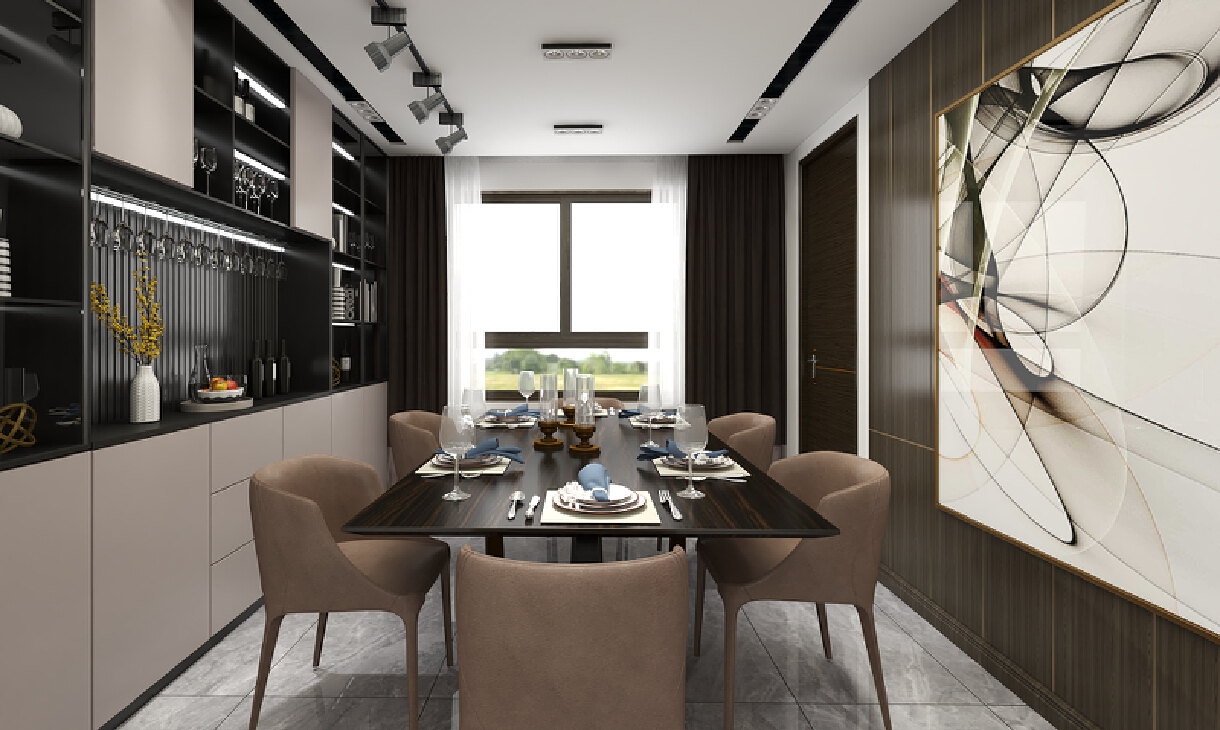本案客餐廳一體的設計,使得空間通透明亮,木質材料的運用與現代設計相結合,著深厚的傳統意蘊和生活情調。