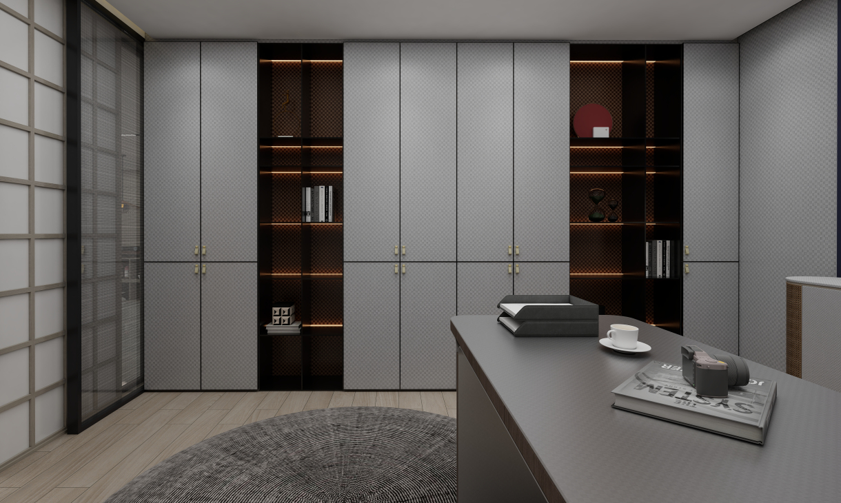 專屬中性大地色調(diào)性 透過材質(zhì)肌理交互堆疊 大片絲柔百葉漫射溫和光線 傳達場域瑞安定溫暖的情緒