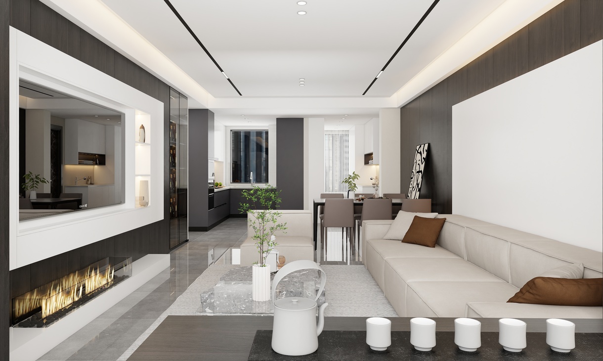 每個空間至少2張效果圖+1張全案全景圖展示,方案描述完整,所有空間需命名。