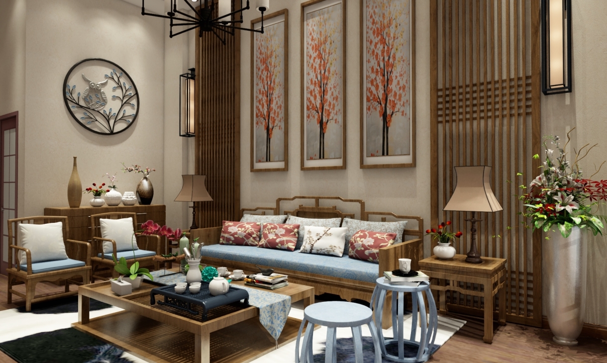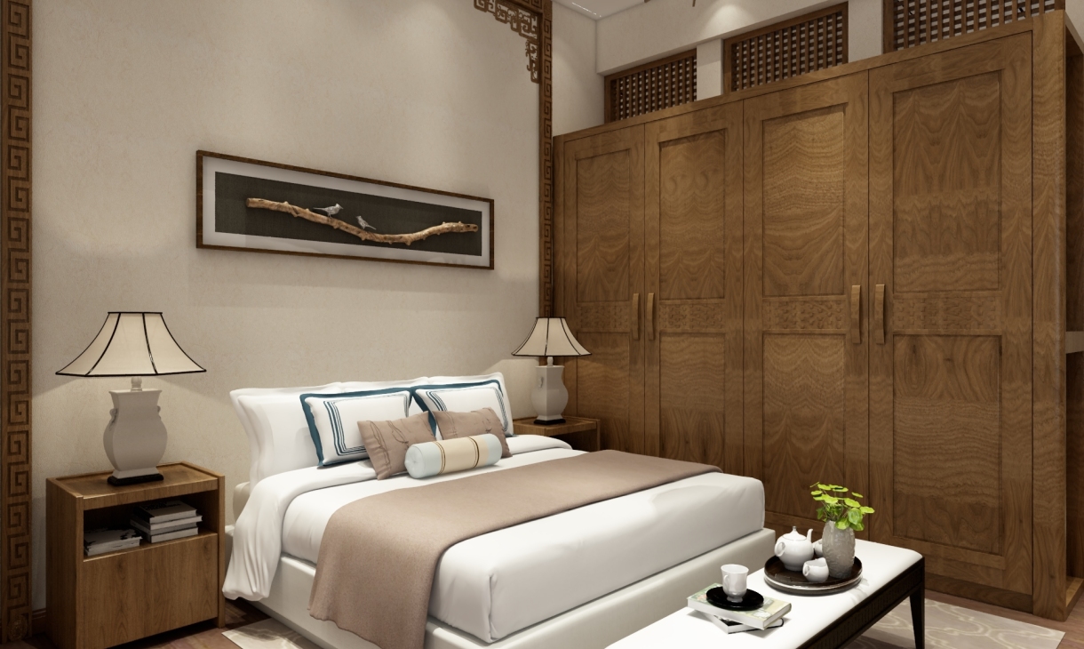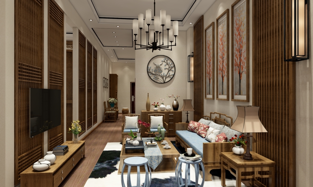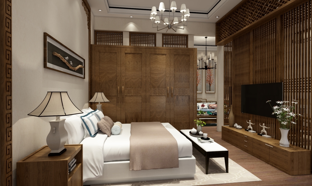 中式風格非常講究空間的層次感,在需要隔絕視線的地方,則使用中式的屏風或窗欞、中式木門、工藝隔斷、簡約化的中式“博古架”,通過這種新的分隔方式,單元式住宅就展現出中式家居的層次之美。再以一些簡約的造型為基礎,添加了中式元素,使整體空間感覺更加豐富,大而不空、厚而不重,有格調又不顯壓抑。